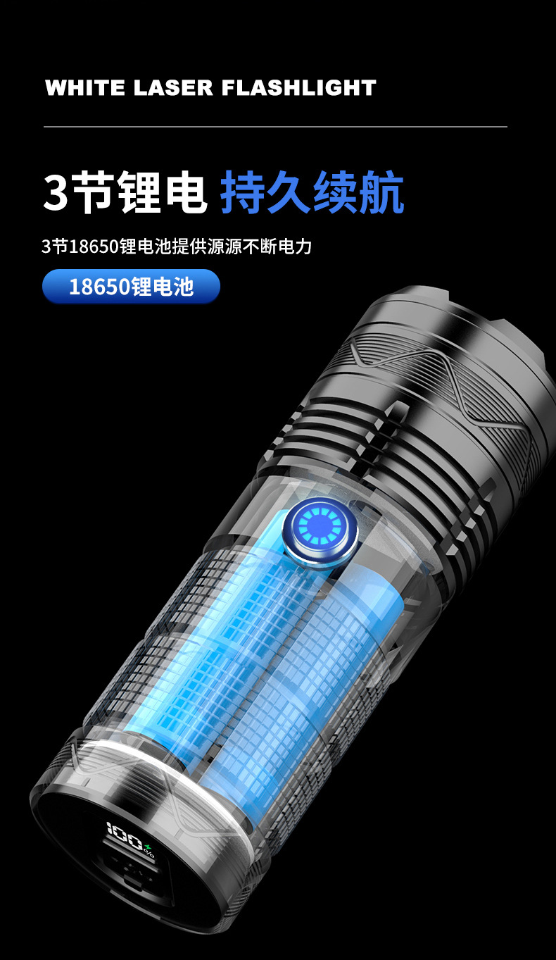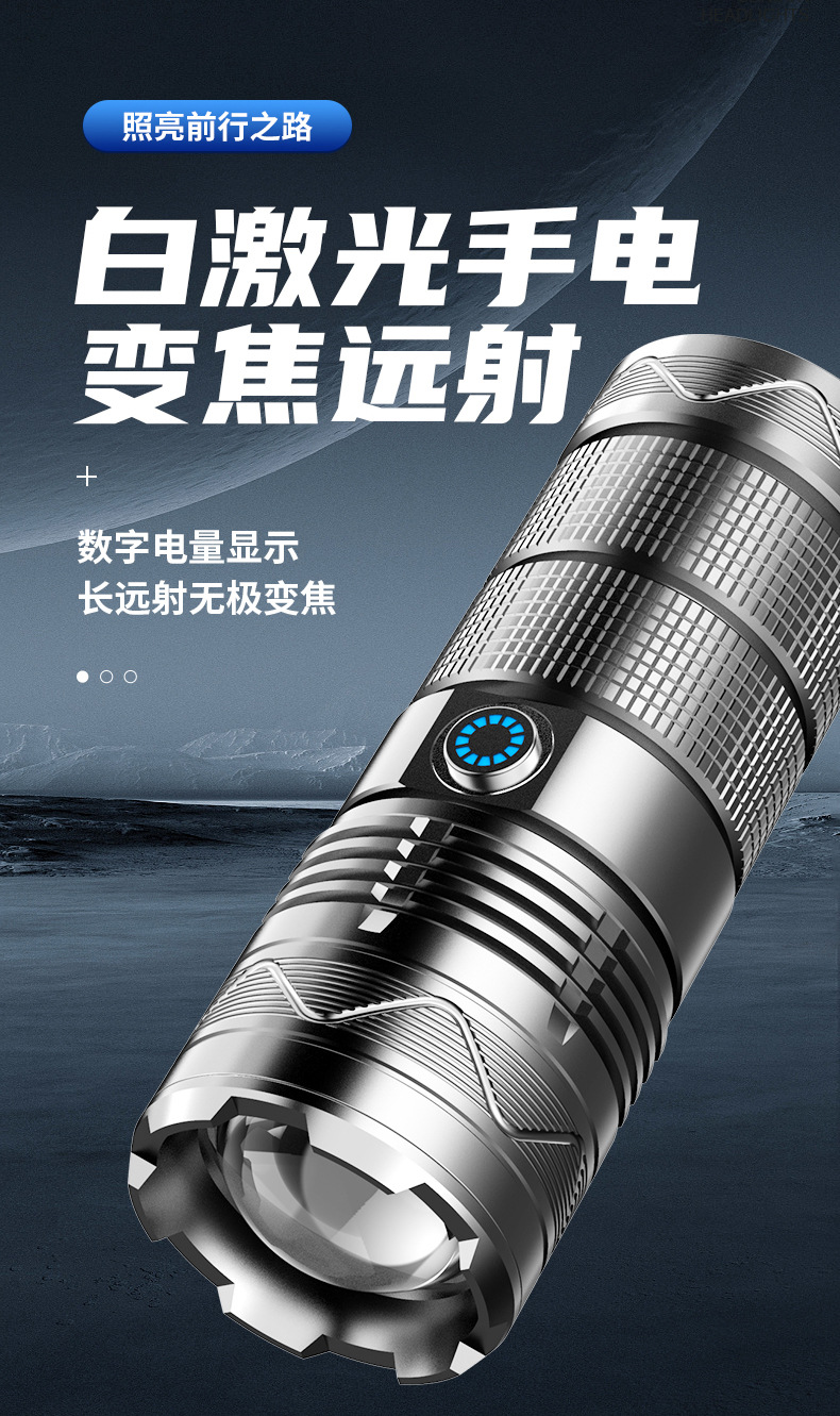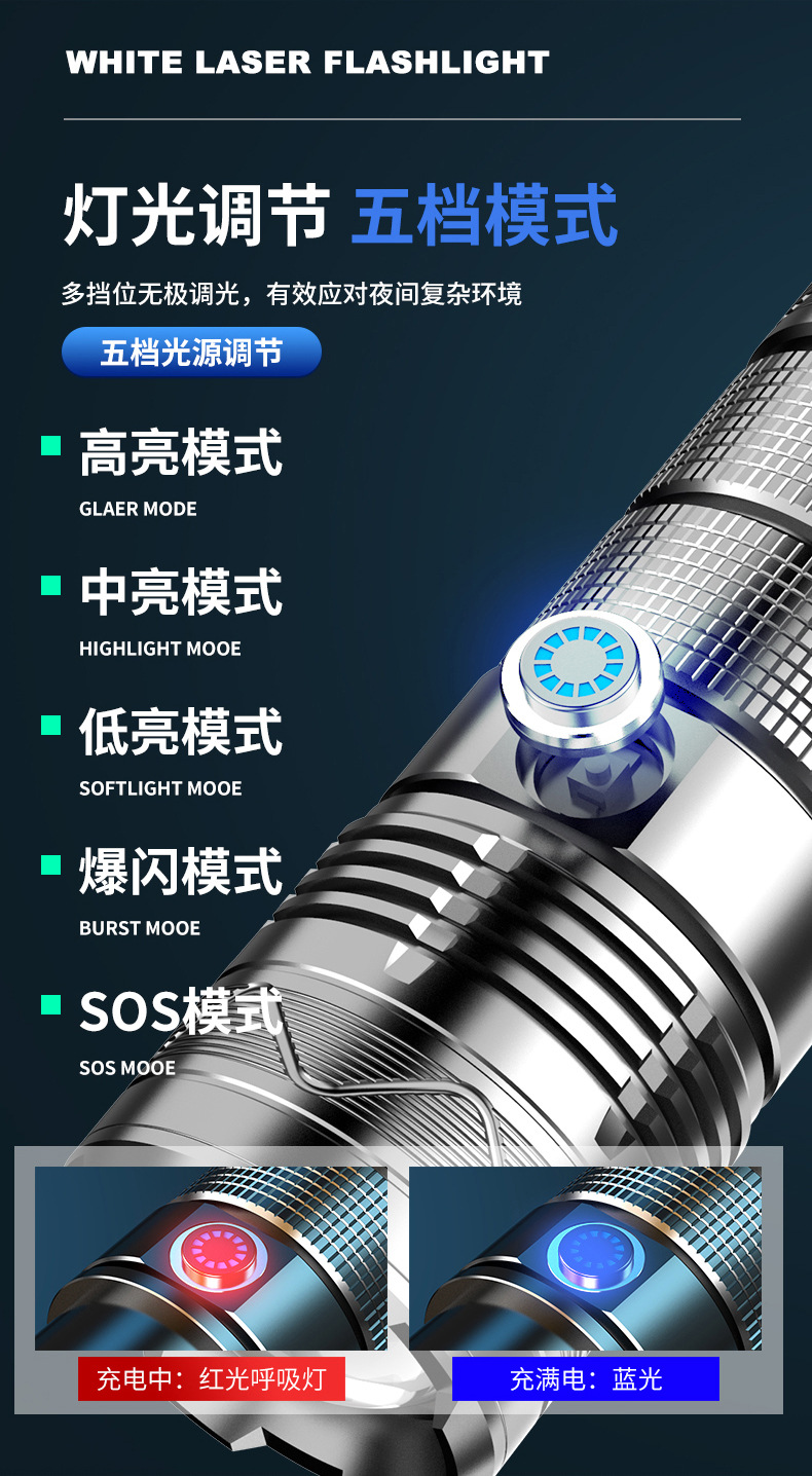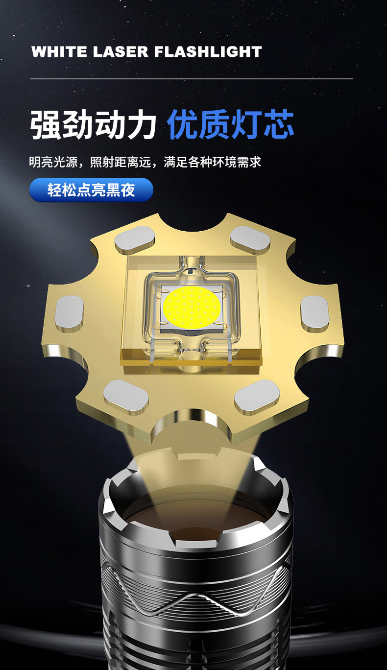 Nueva linterna de luz fuerte Super brillante de largo alcance al aire libre de carga de alta potencia de luz portátil zoom láser blanco pistola