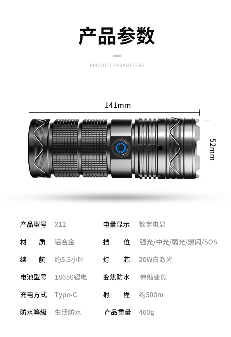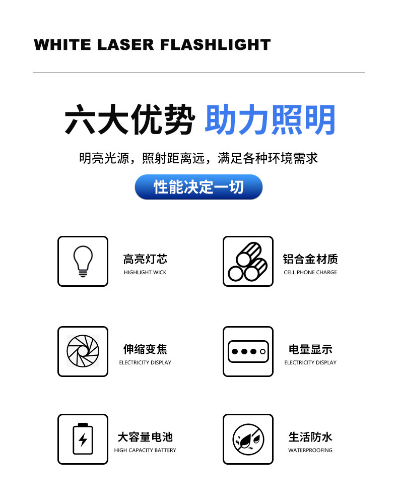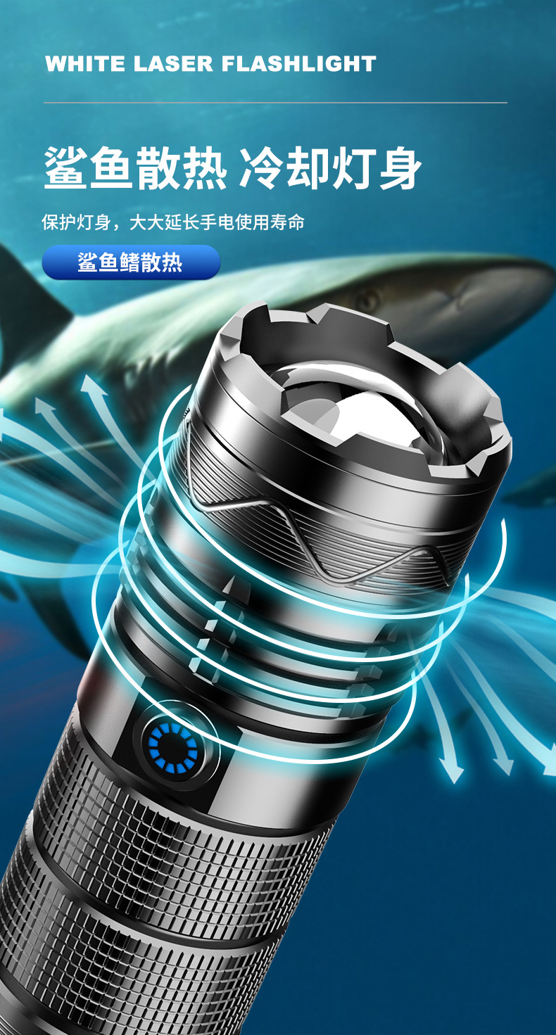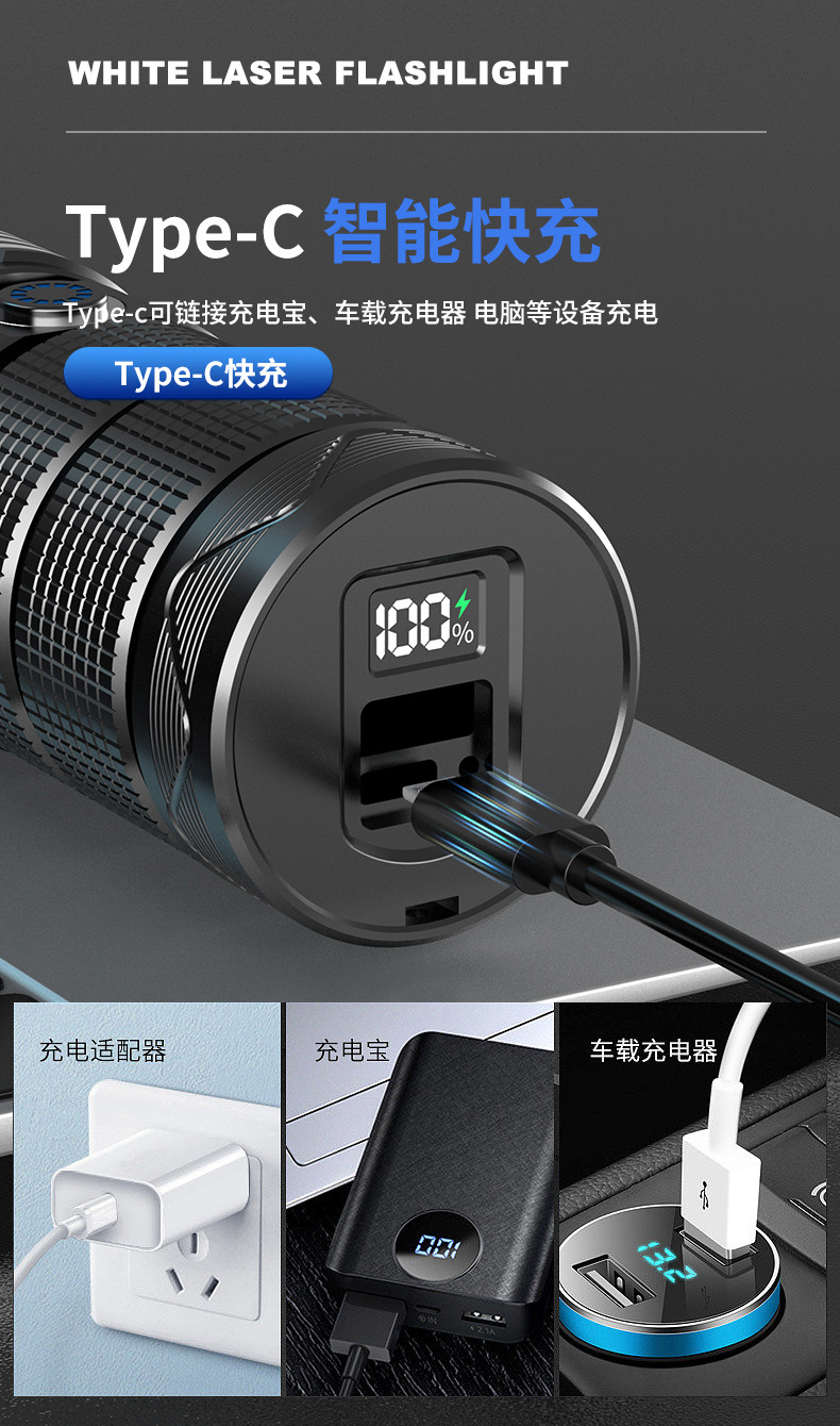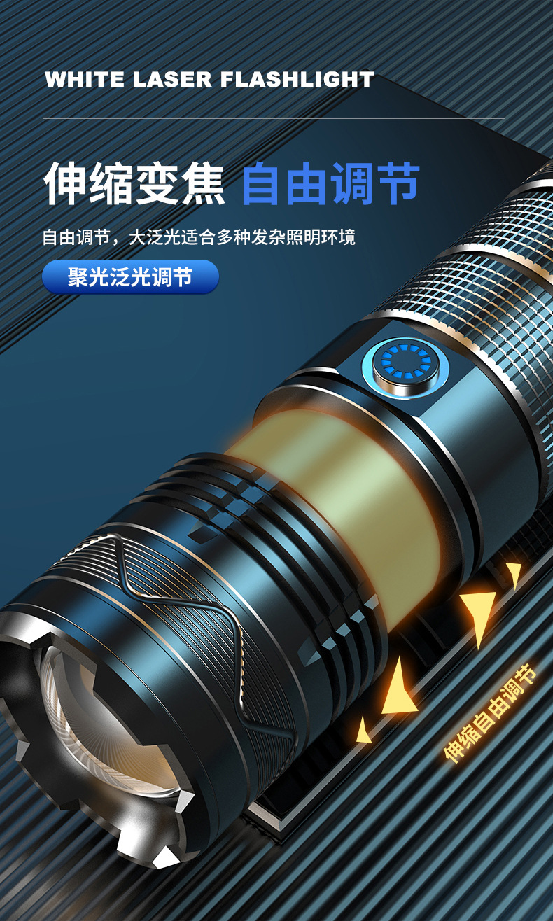 Nueva linterna de luz fuerte Super brillante de largo alcance al aire libre de carga de alta potencia de luz portátil zoom láser blanco pistola