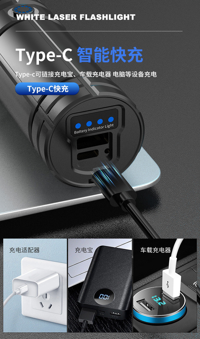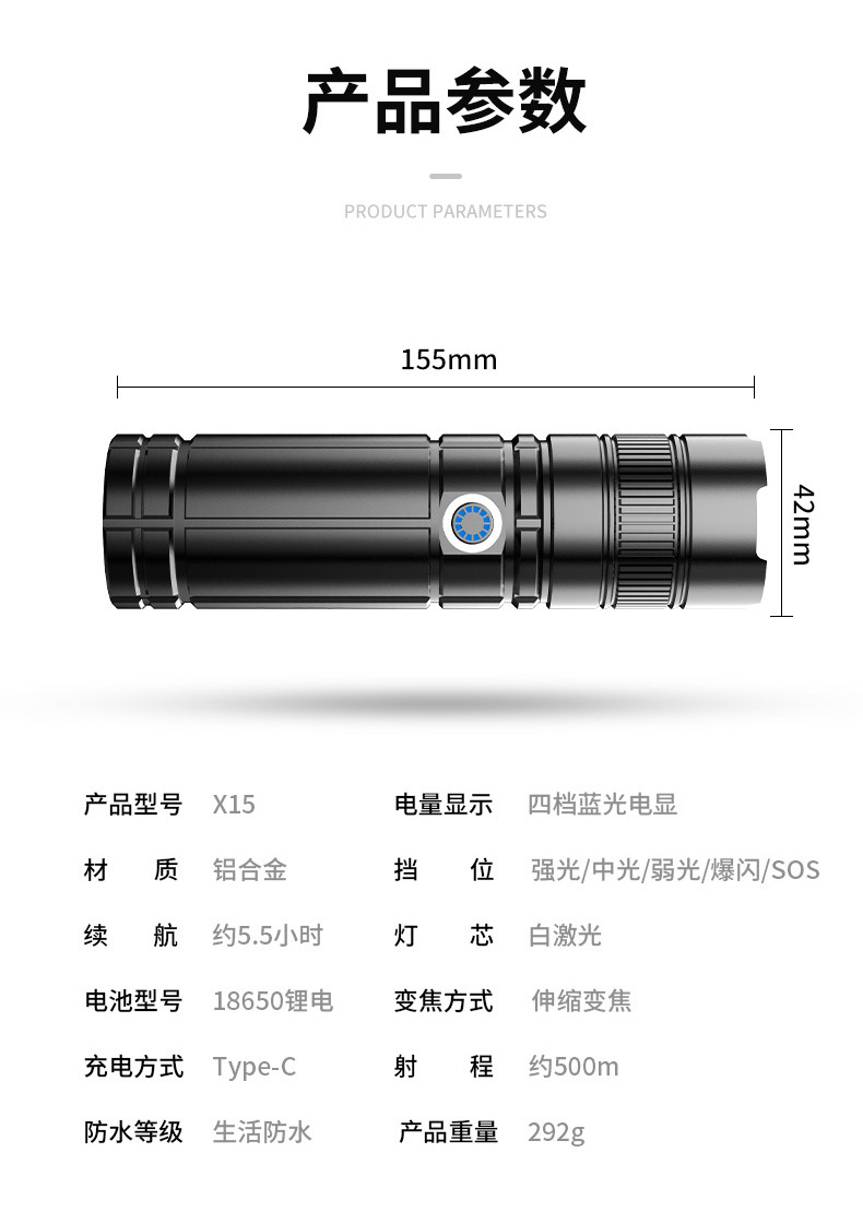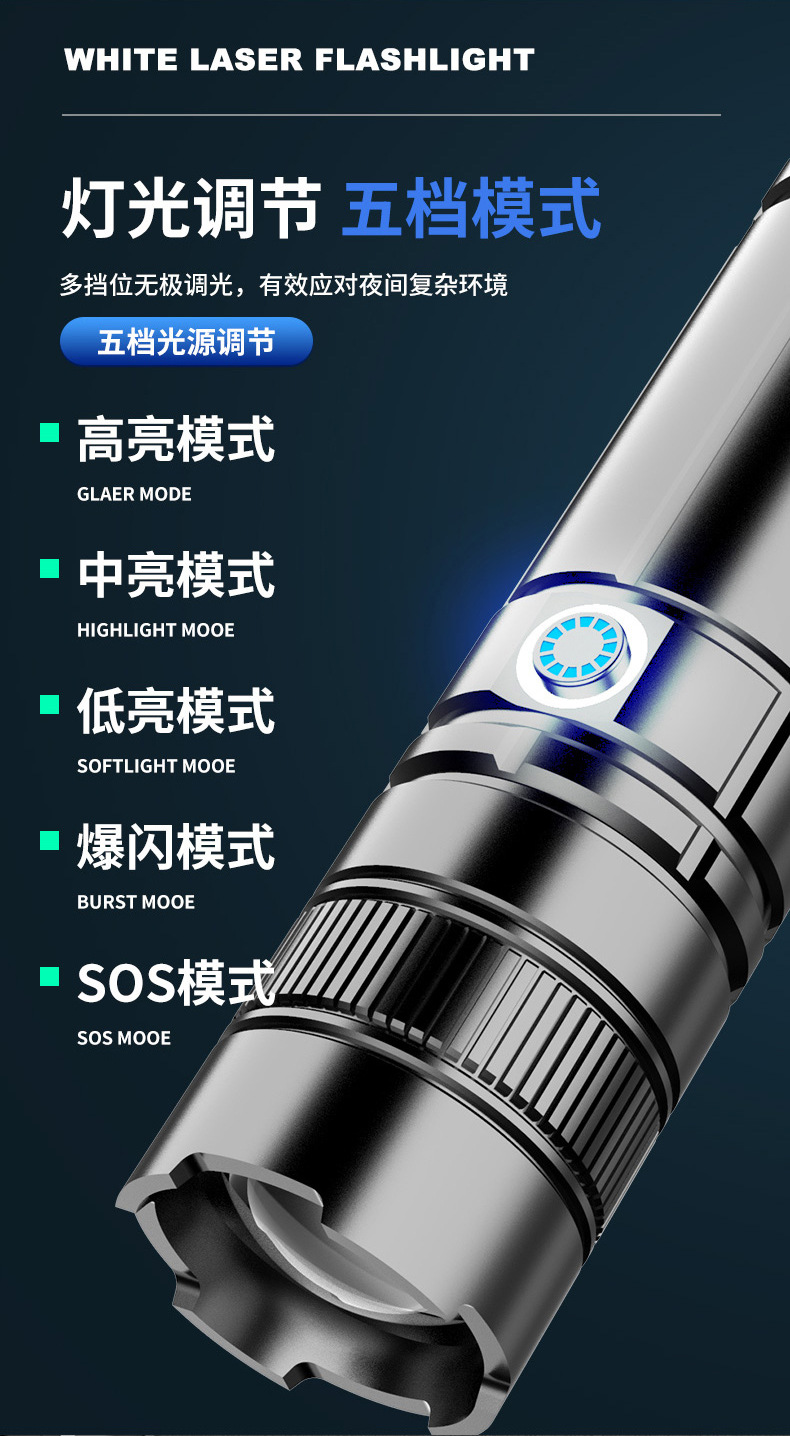Nueva linterna táctica aleación de aluminio telescópica zoom linterna recargable acampar al aire libre linterna de iluminación