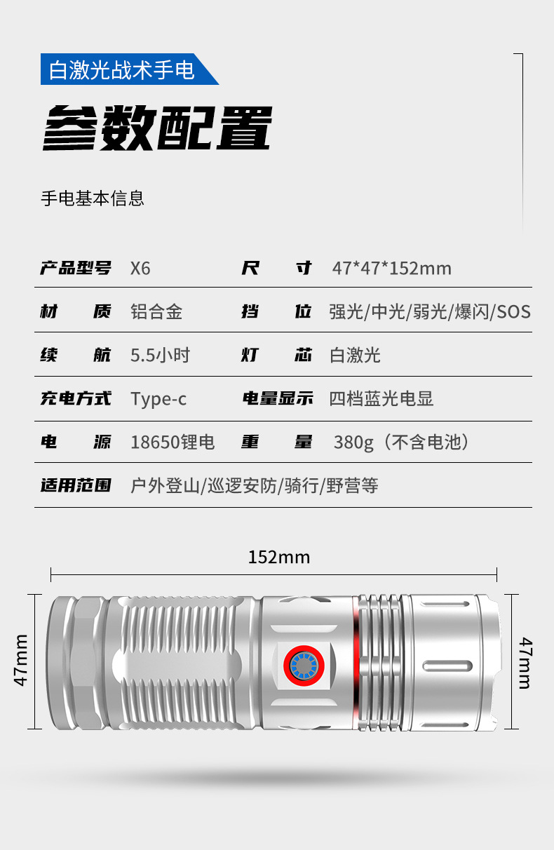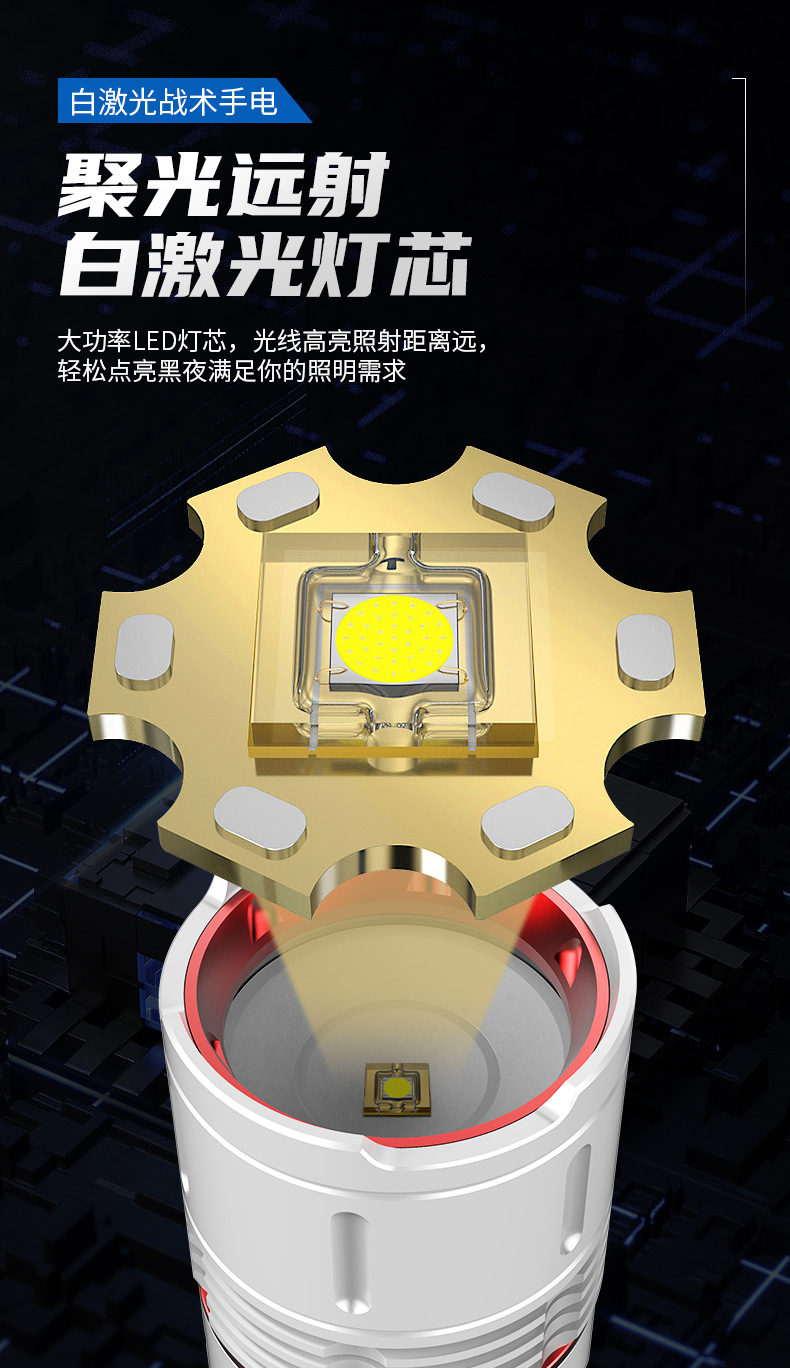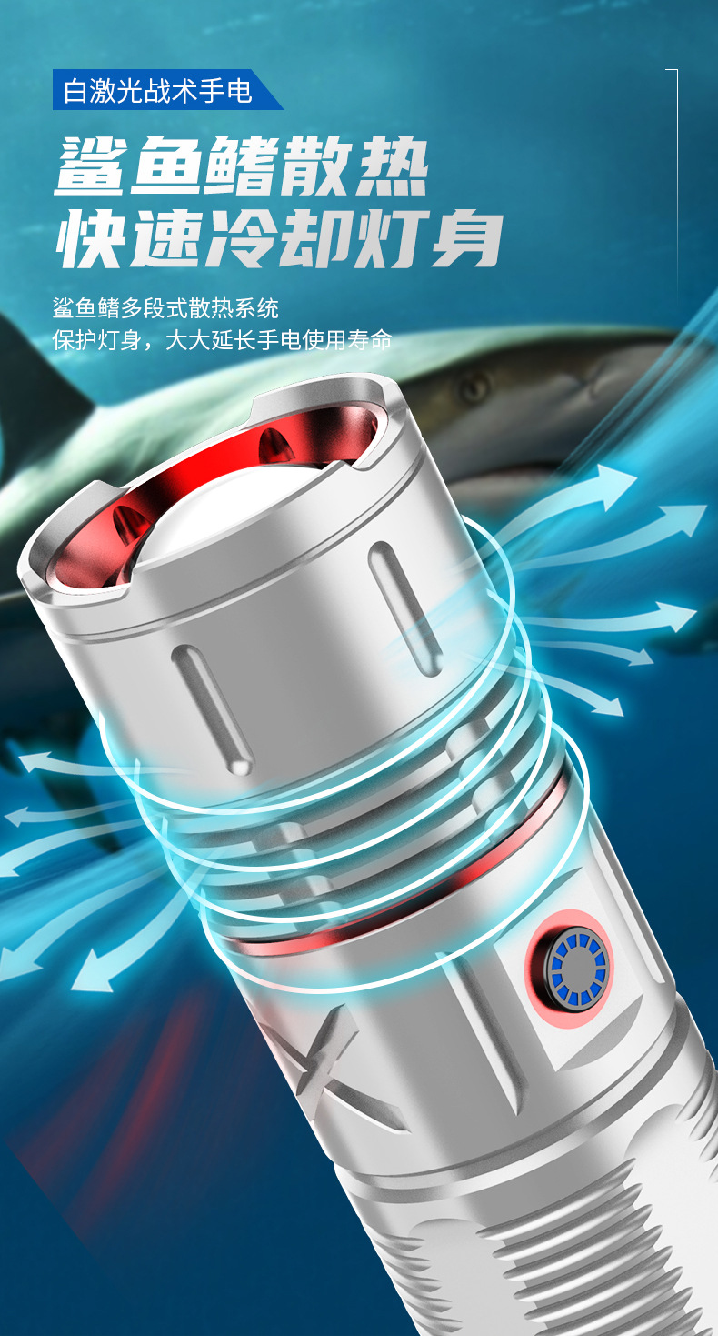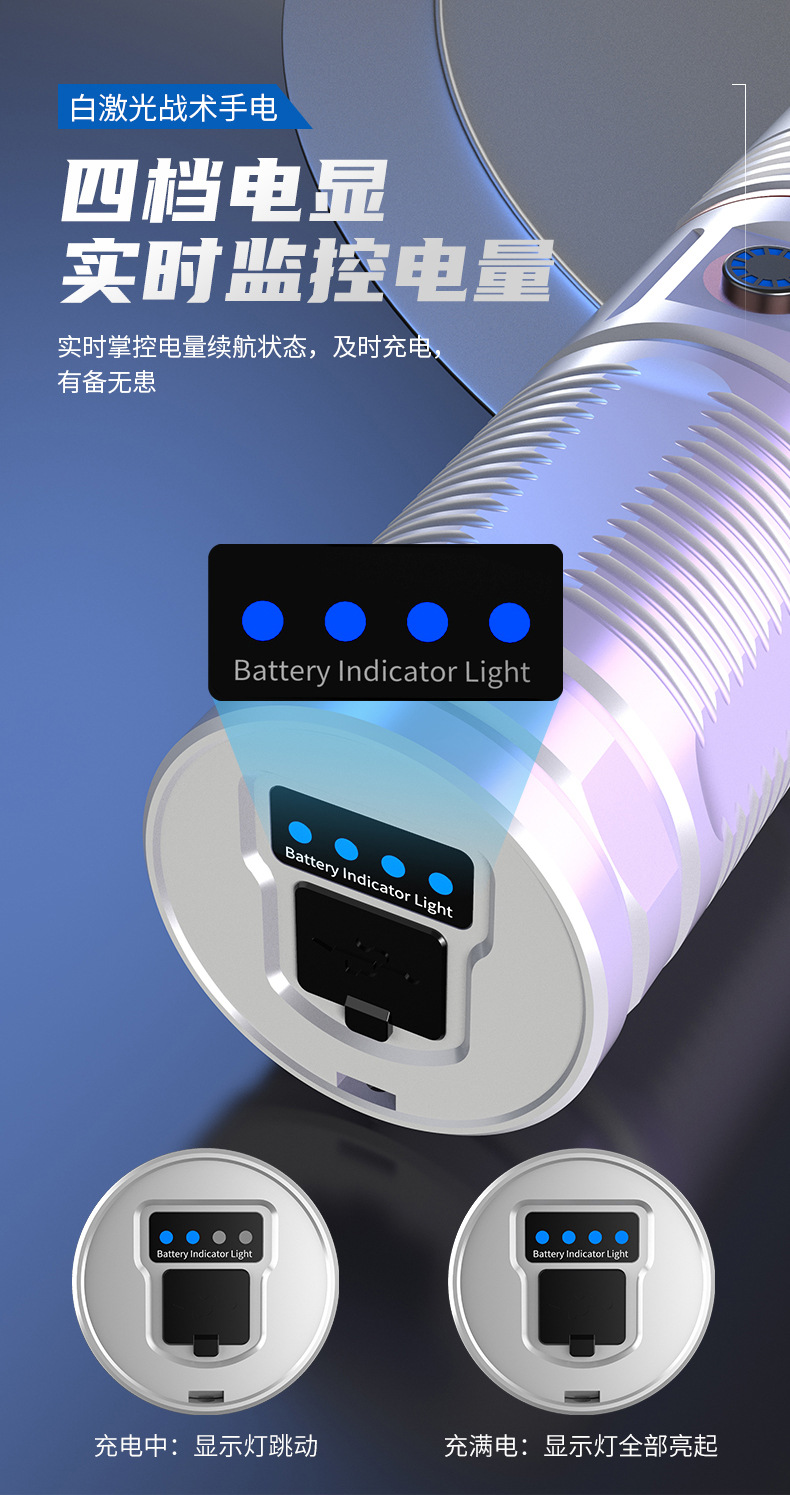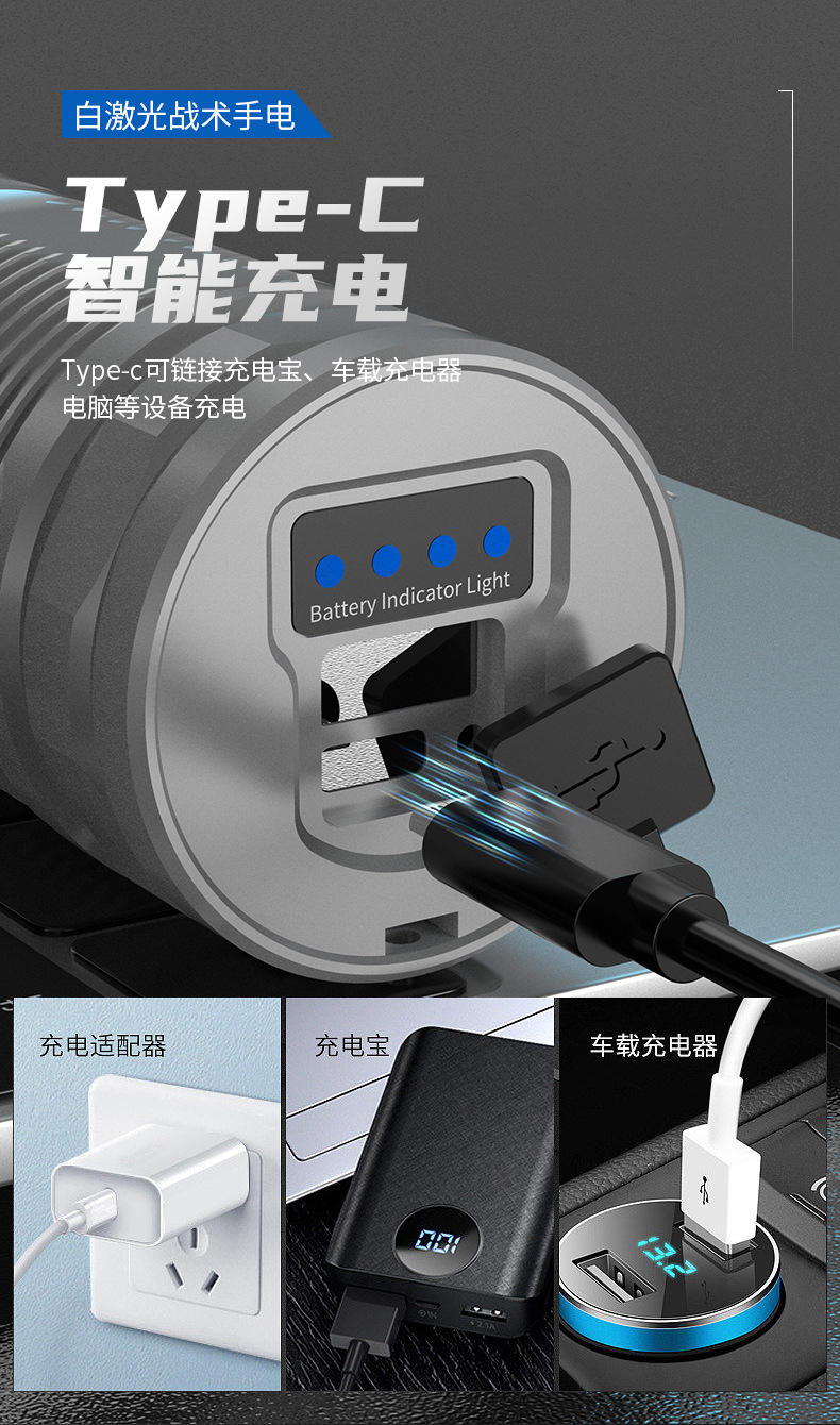 Nueva linterna de plata al aire libre láser blanco proyector remoto Tipo-C de carga rápida cola pantalla eléctrica linterna de zoom telescópico