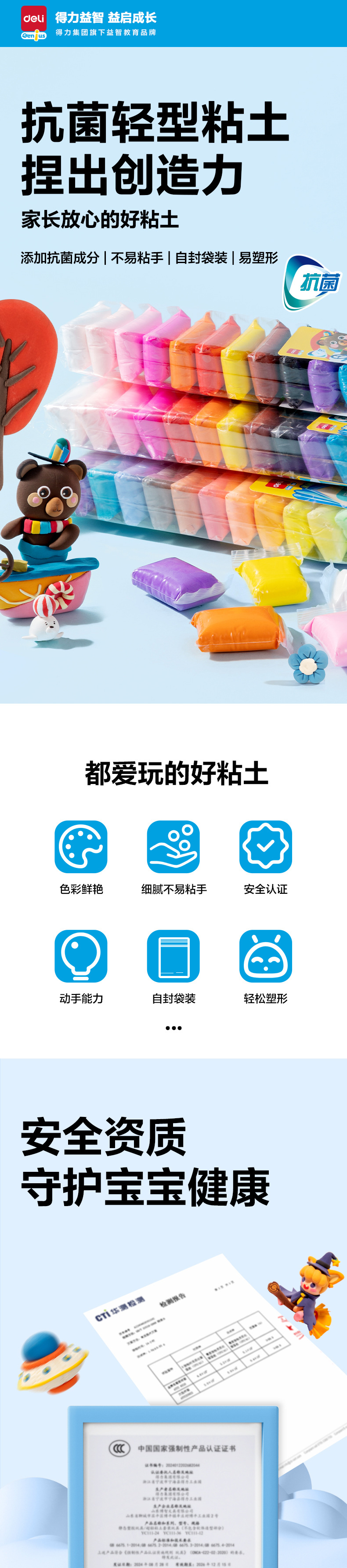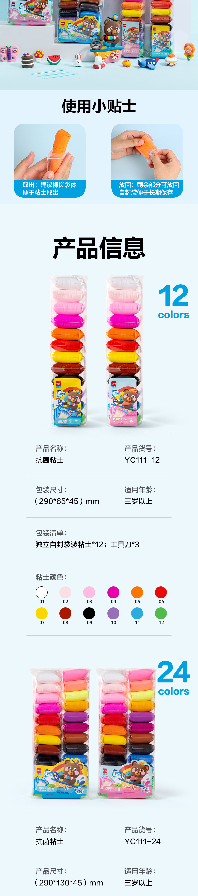 Deli YC111-12 Sellado Clay Estudiante Clay de color antibacteriano Clay de plástico ultraligero de color de bricolaje hecho a mano