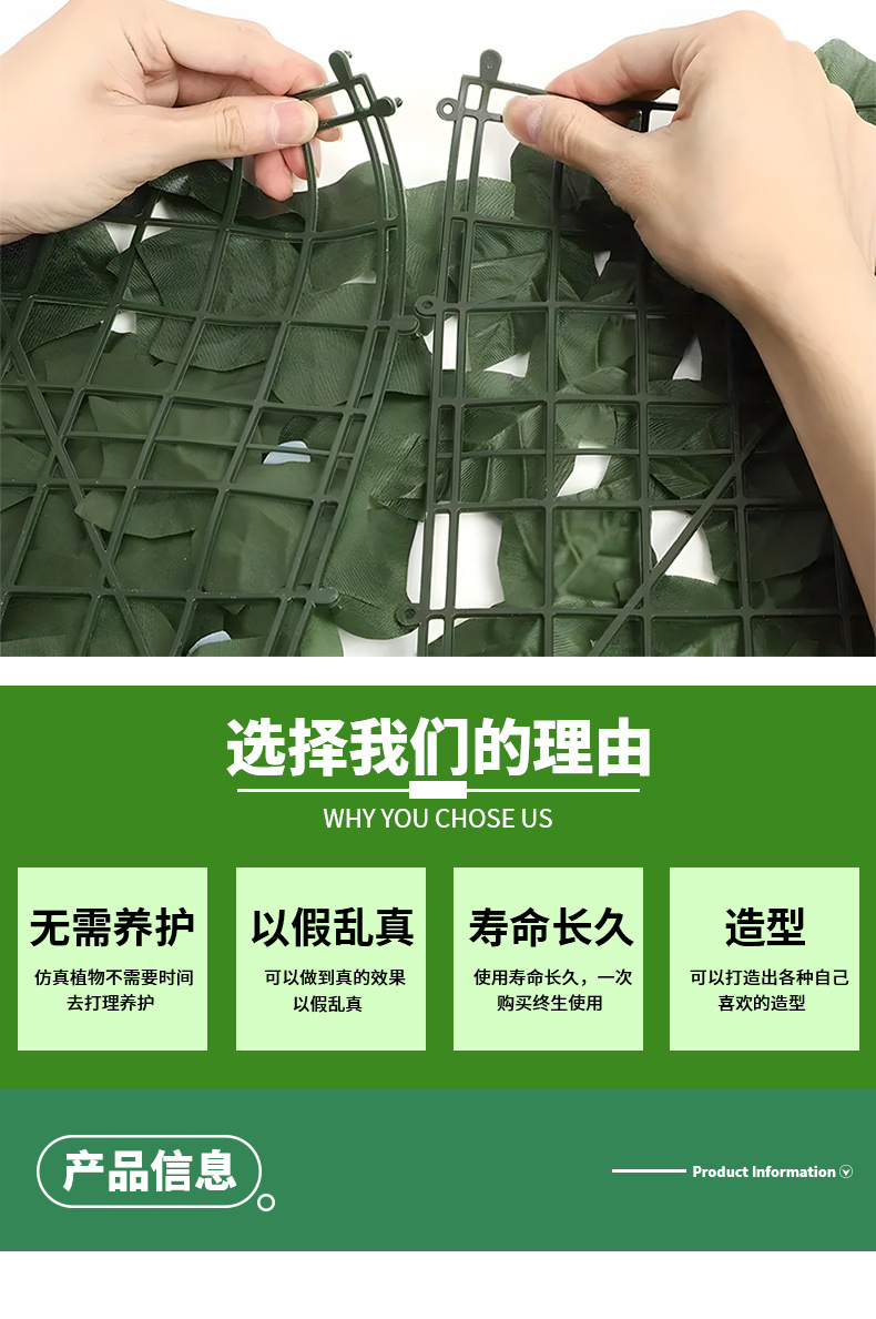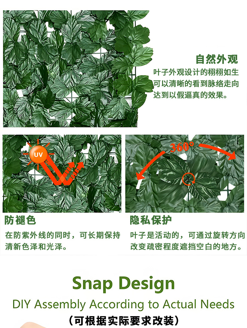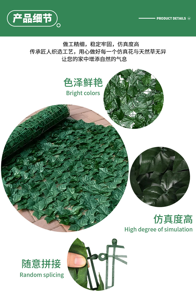 Simulación transfronteriza de plantación verde valla hoja valla de patio pared de plantas jardín hoja verde valla decorativa de plástico sentido avanzado