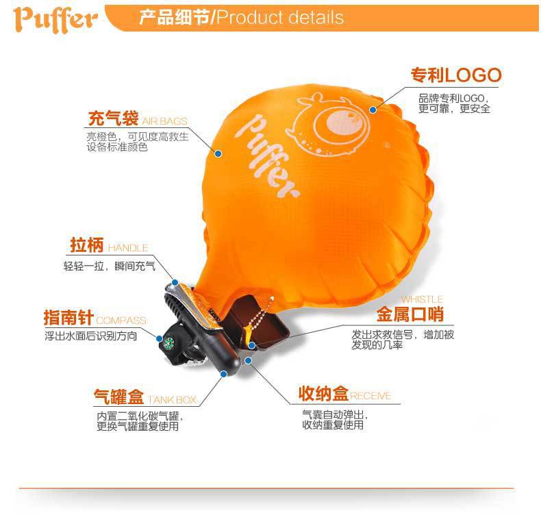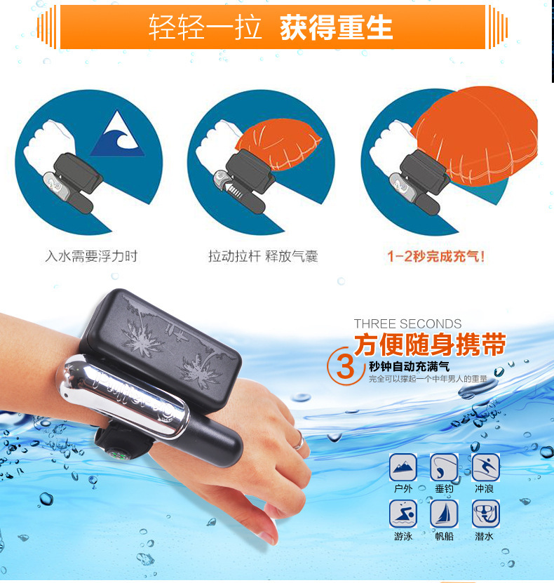 Puffer anti-ahogamiento natación pulsera de salvamento pesca auto-rescate inflable airbag correa de muñeca submarino junto al mar equipo de salvamento