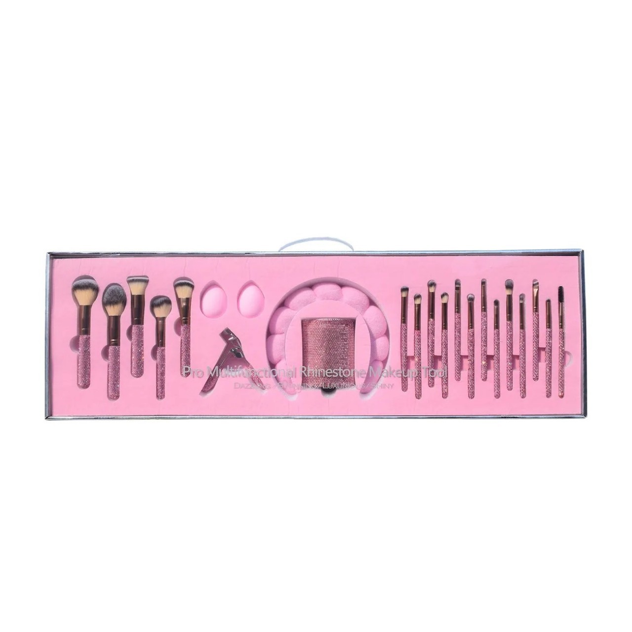 Nuevos productos transfronterizos 18 pinceles de maquillaje con incrustaciones de diamantes Diamante Cubo Diadema Clip de pestañas Juego completo de herramientas de belleza Juego de 23 piezas