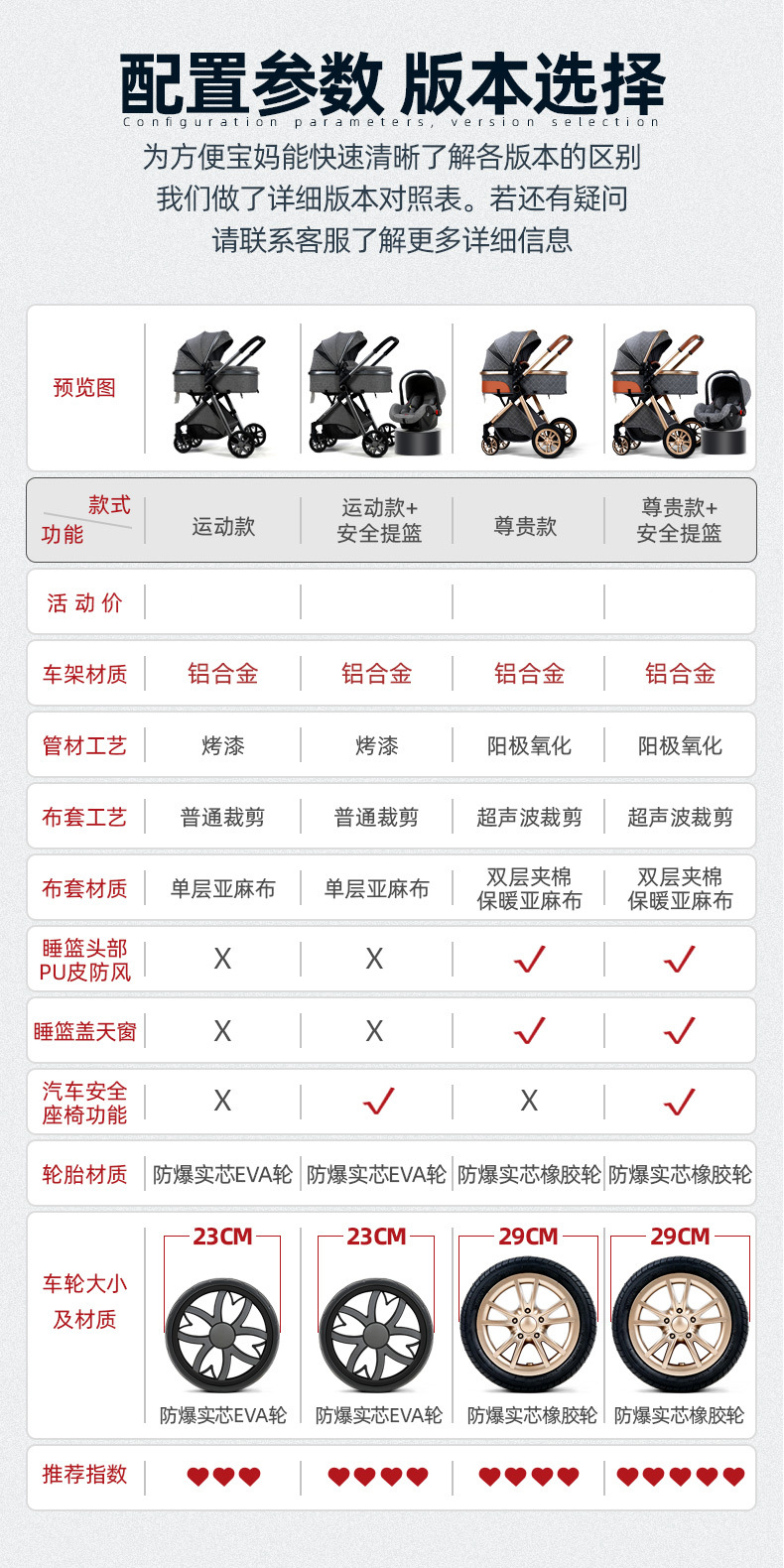 La canasta del cochecito de bebé de alto paisaje puede sentarse y acostarse, ligero y plegable, amortiguador bidireccional, cochecito de bebé recién nacido 0-3 años