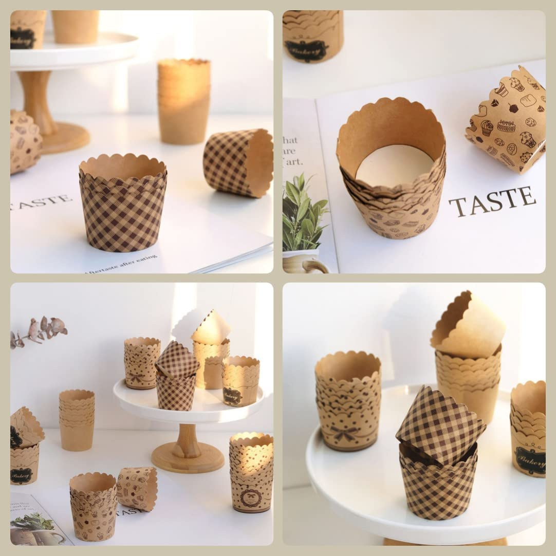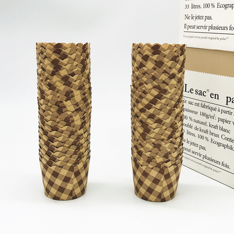 50 tazas de pastel de piel de vaca a cuadros de tamaño medio y grande, empaque de alimentos horneados, pastel de azufaifa al vapor pequeño, taza de bandeja de papel redonda