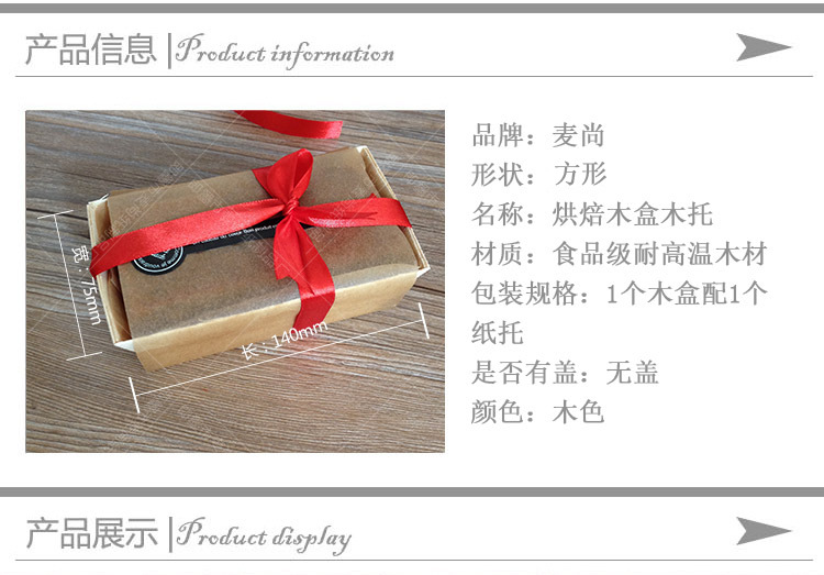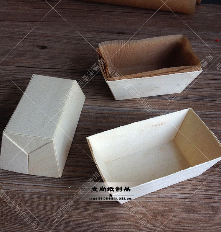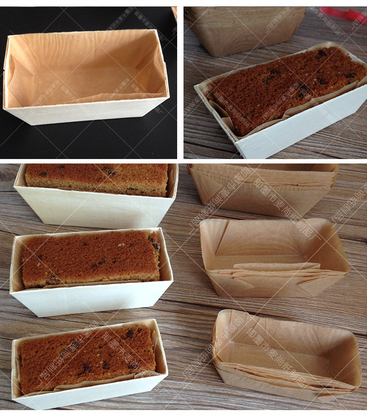 Calidad Alimentaria alta temperatura resistente molde de madera rectangular molde de pastel de madera grande para hornear papel taza pastel bandeja de madera