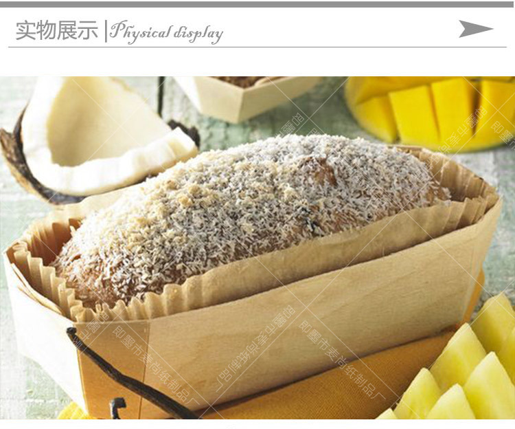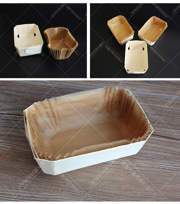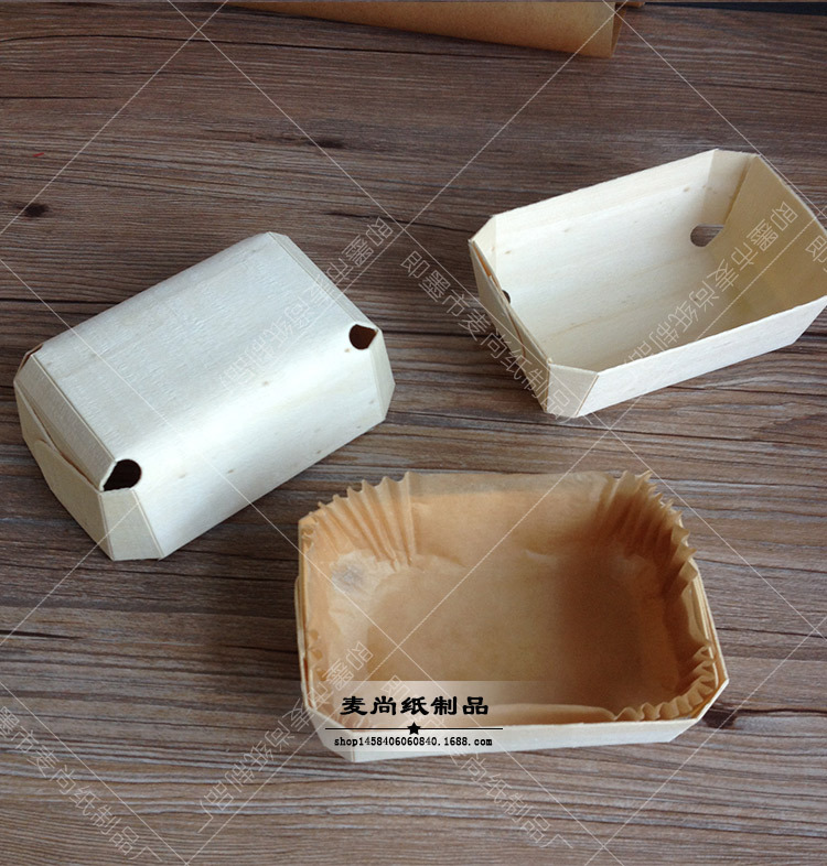 Alta temperatura resistente a la hornada grado alimenticio rectangular libra pastel molde para hornear papel taza pan tostado pastel molde de madera al por mayor