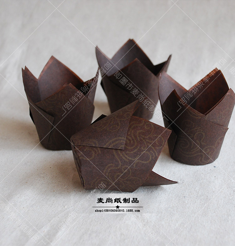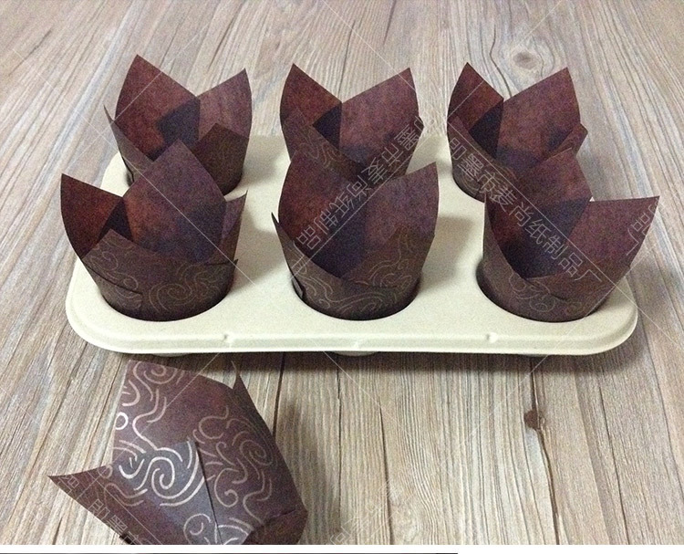 Grado Alimenticio europeo resistente a altas temperaturas medio marrón Cupcake hornear oro onda pastel bandeja de papel personalizado por los fabricantes