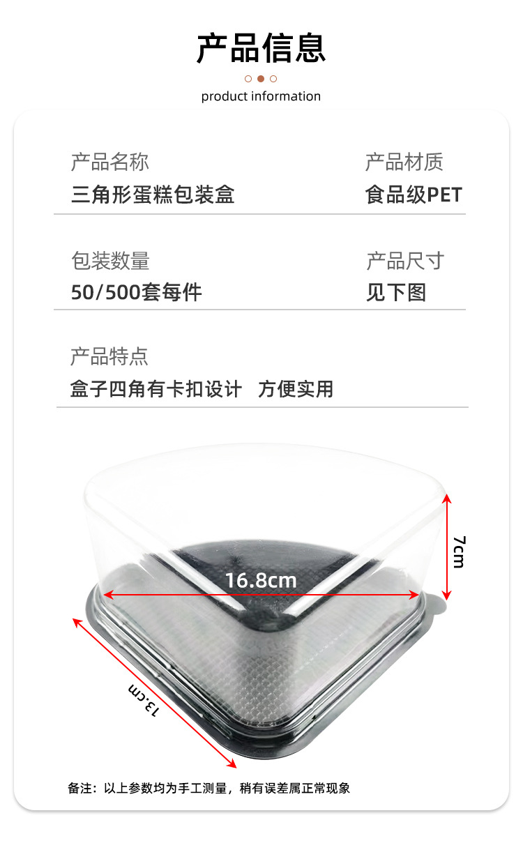 Caja de embalaje en bloque de corte de pastel triangular de 8 pulgadas transparente Caja de blíster de ZTL-136 Caja de embalaje para hornear pastel de pastelería