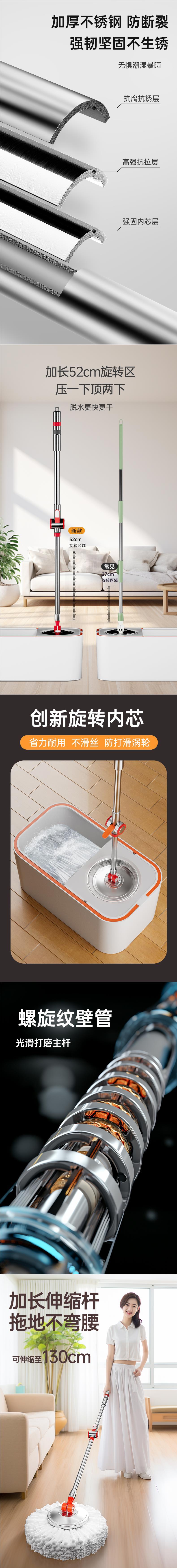 Varilla de fregona universal giratoria nueva deshidratación automática, accesorios de limpieza de una sola barra de fregona de suelo de trapeador doméstico