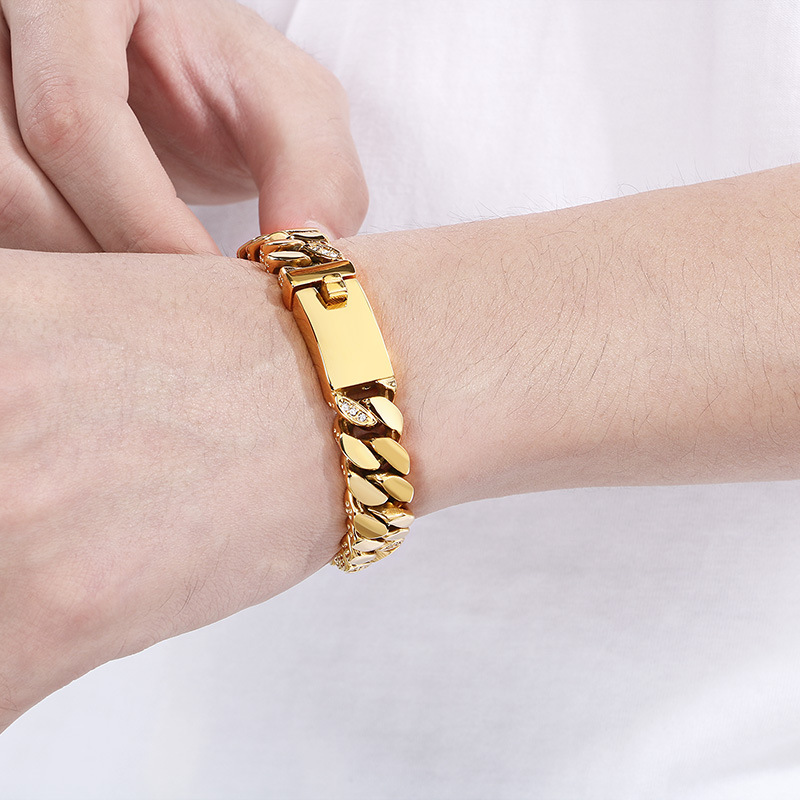 Pulsera de moda estilo hip hop diseño creativo 12mm diamante cadena cubana borde de corte punteado pulsera de acero de titanio para hombre