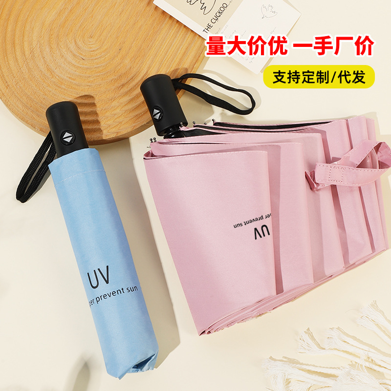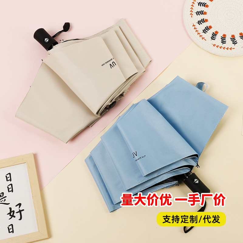 Umbrella UV manual, vinilo comercial, sol y lluvia, paraguas plegable de doble uso, paraguas publicitario de regalo universal, paraguas LOGO, venta al por mayor