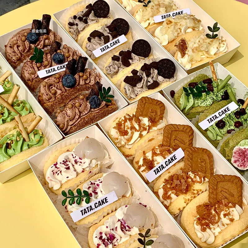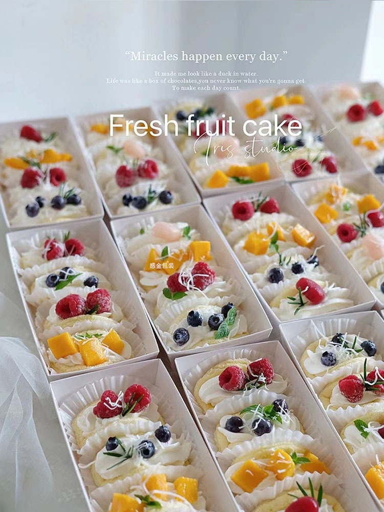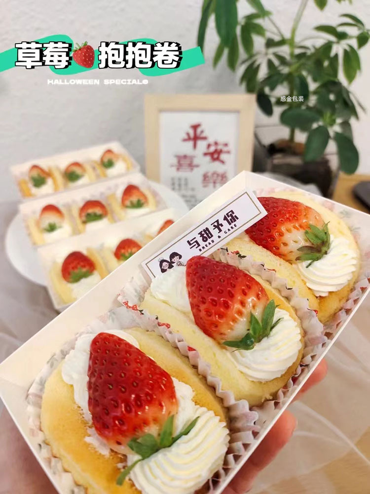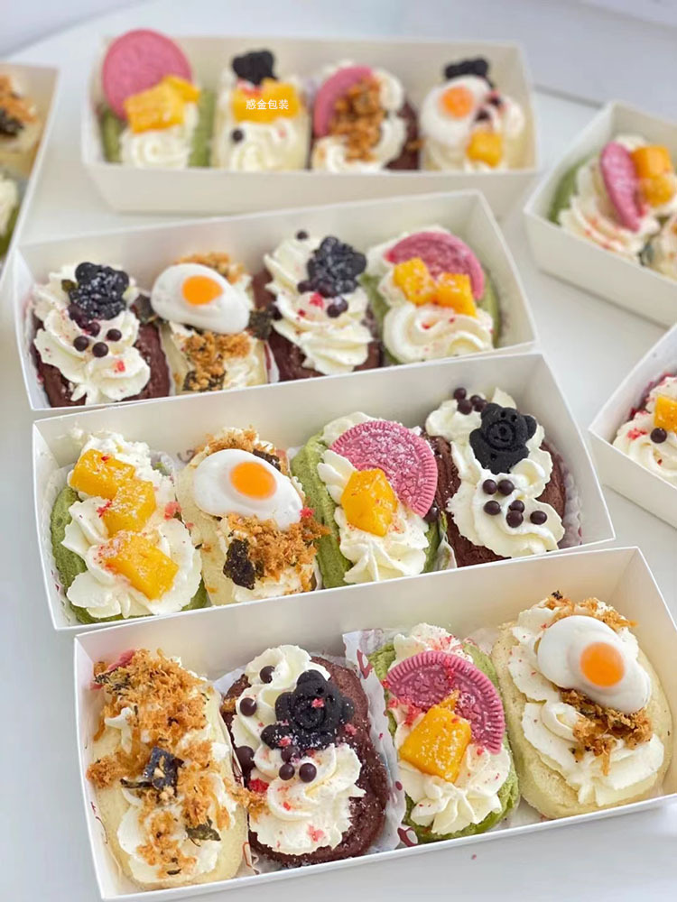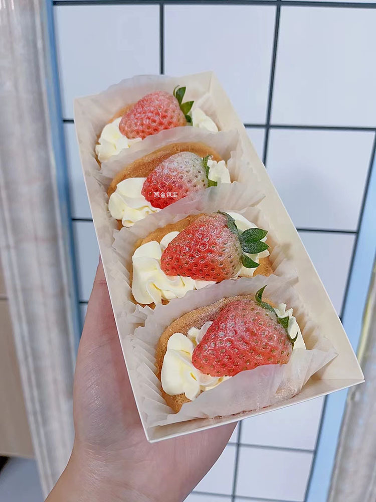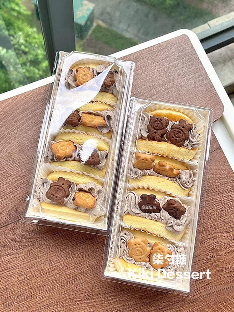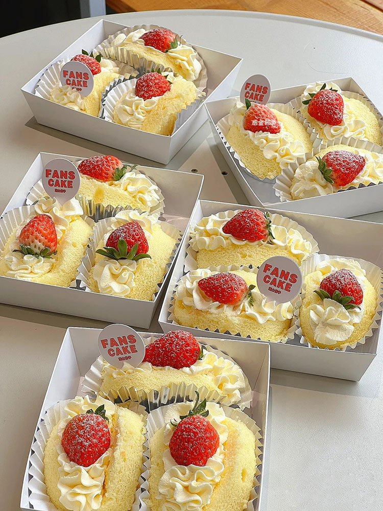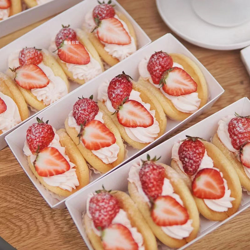 Caja de embalaje de rollo de abrazo de fresa 3 4 Pack nieve Meiniang Swiss roll puff sandwich para hornear caja de embalaje con tapa
