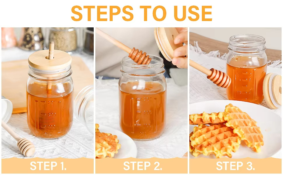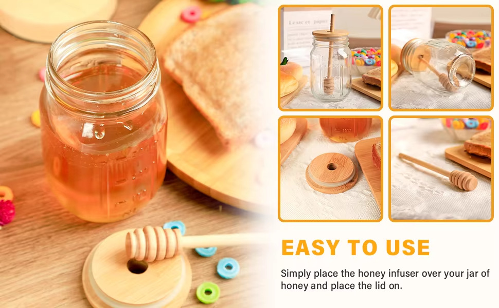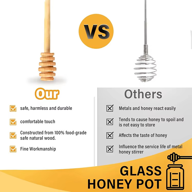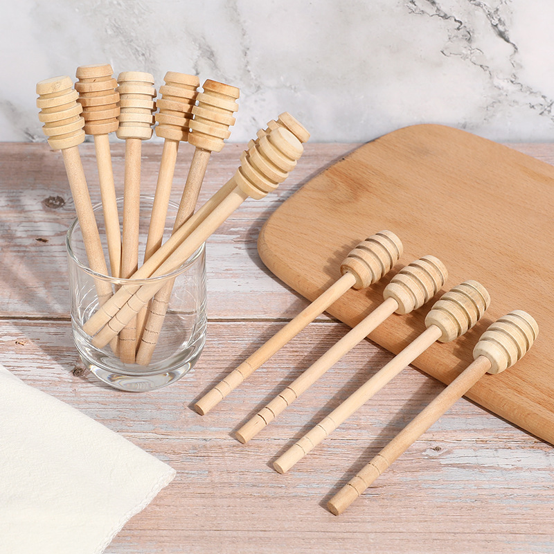 Suministro de punto al por mayor de fábrica de palitos de miel de madera, miel, café con leche de miel, mermelada, palitos de mezcla, letras personalizadas