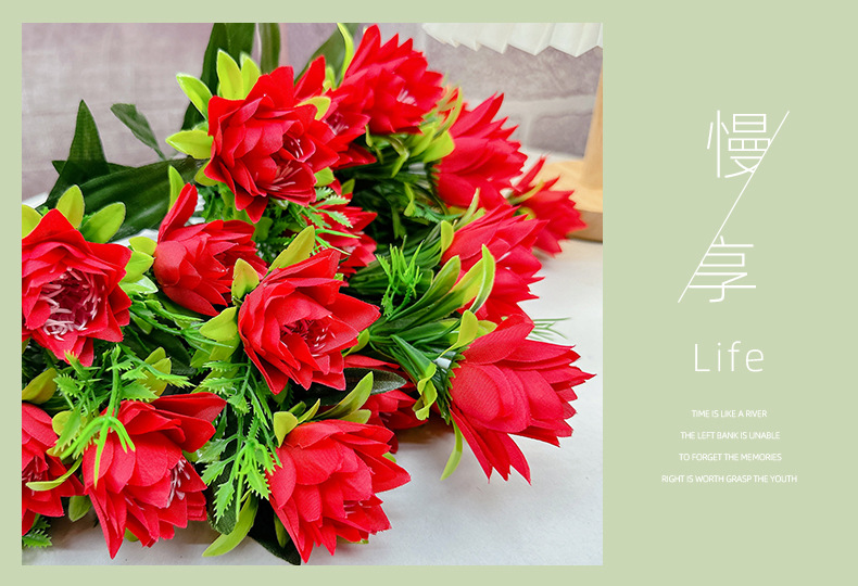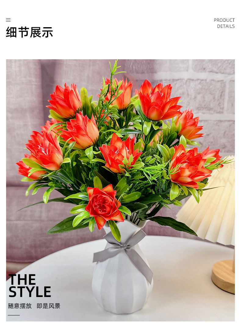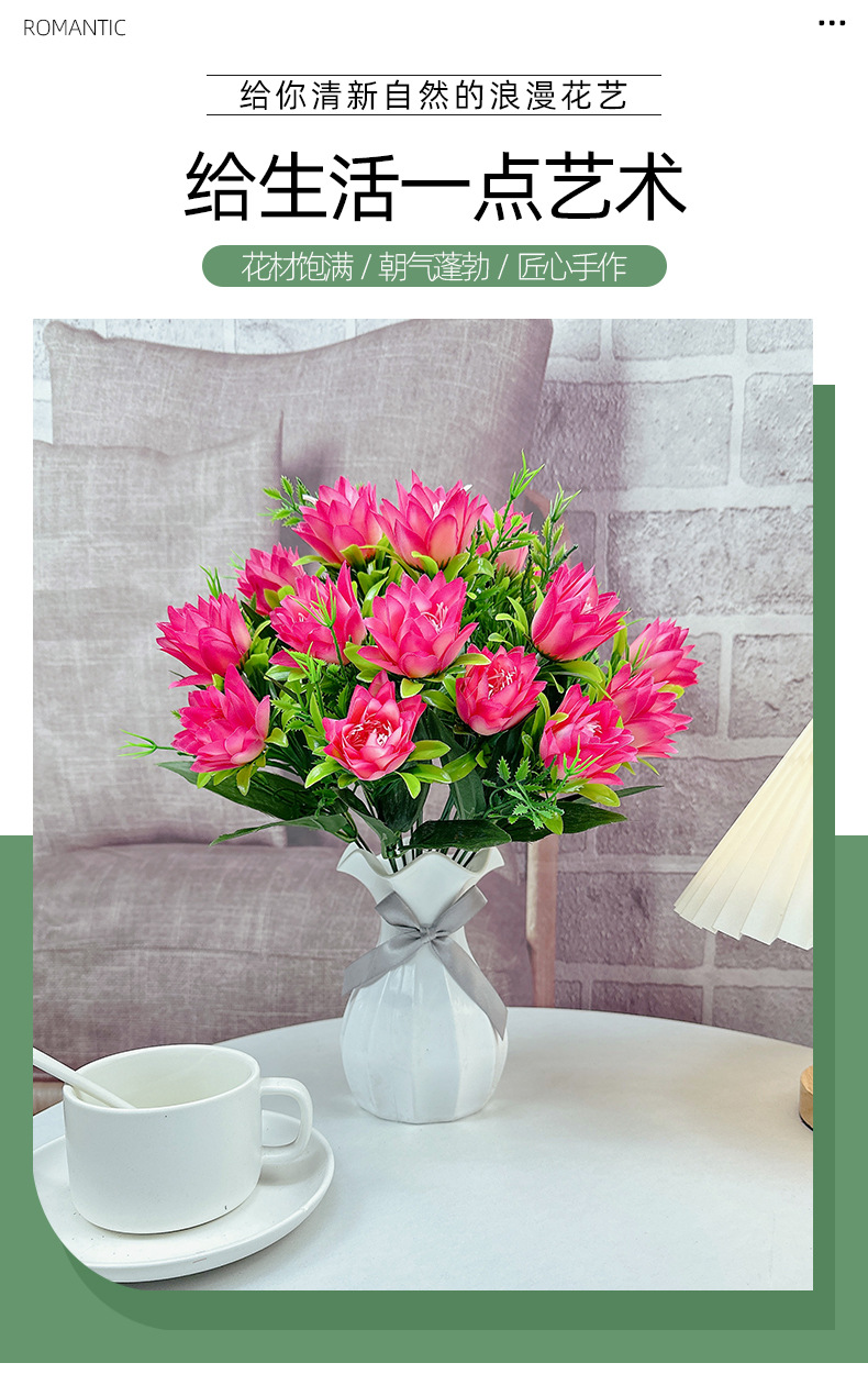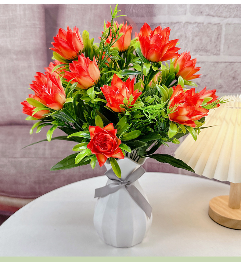 Simulación de rosas, flor falsa, 6 flores de piña, flores de seda, decoración de mesa de salón, decoración de la mesa de arte floral, decoración de bodas, arreglo floral