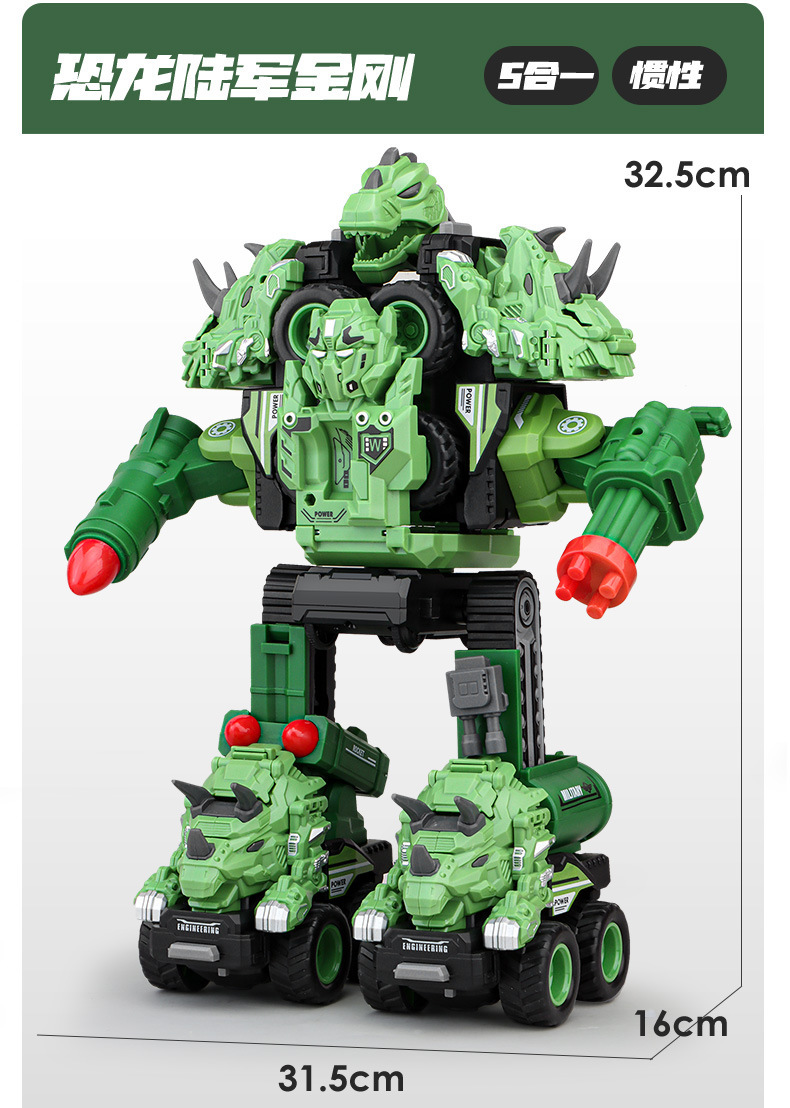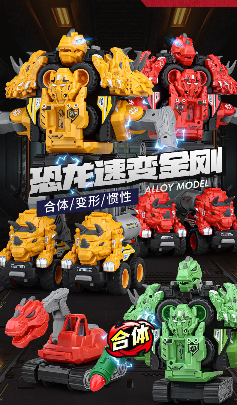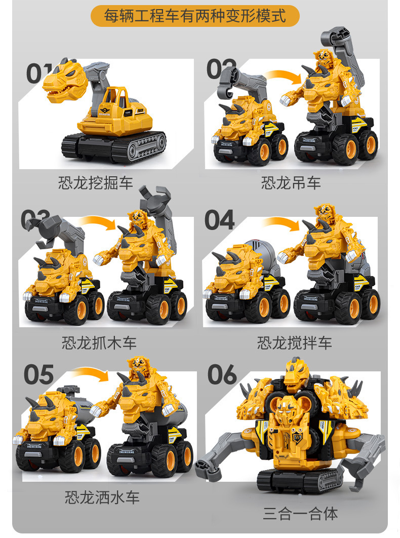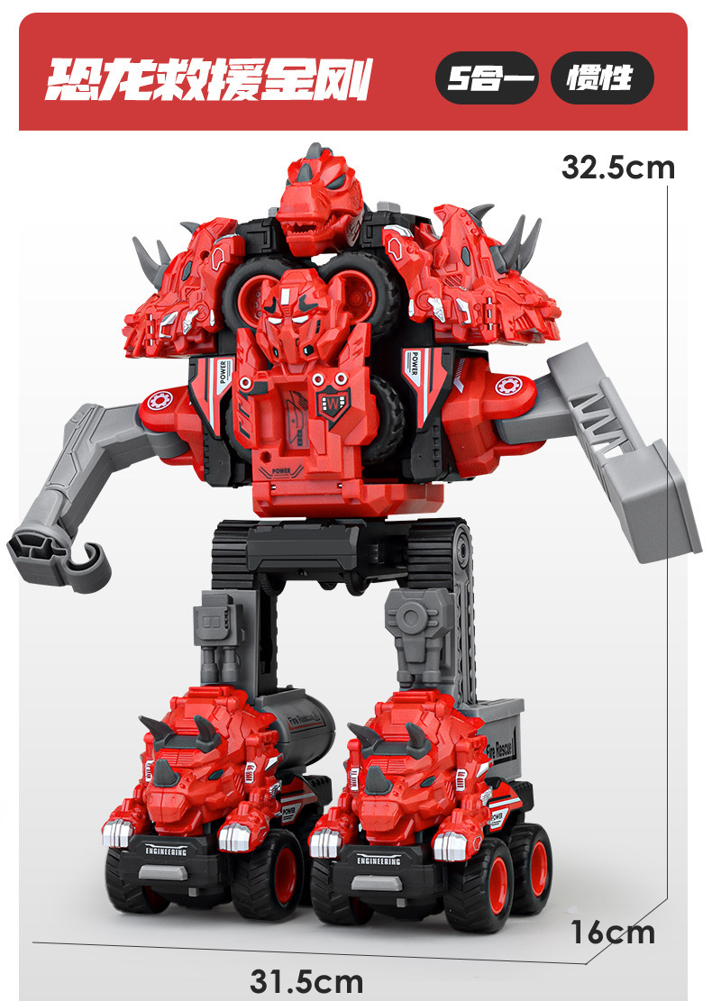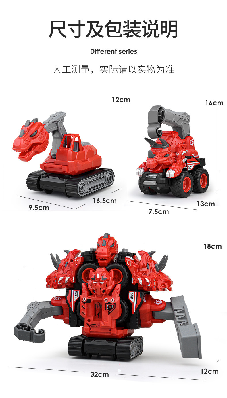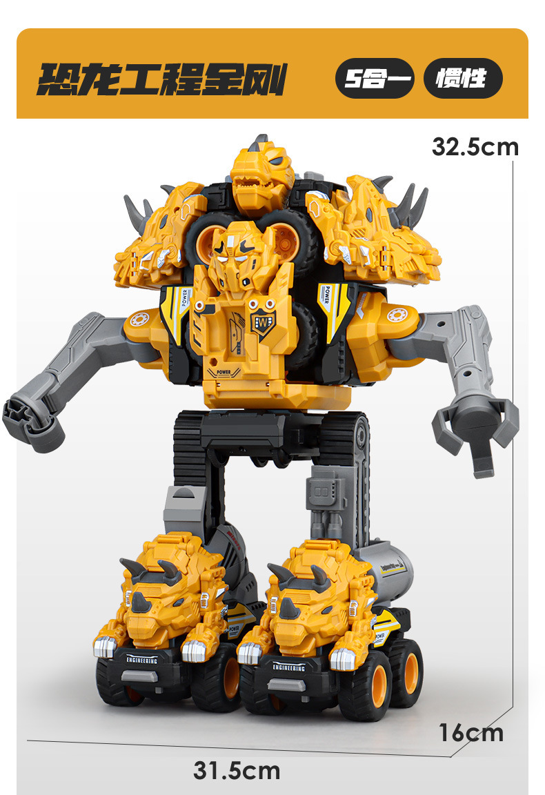 Coche deformado para niños, dinosaurio, coche deformado, robot, vehículo de ingeniería automotriz ensamblado, modelo de coche deformado por colisión inercial