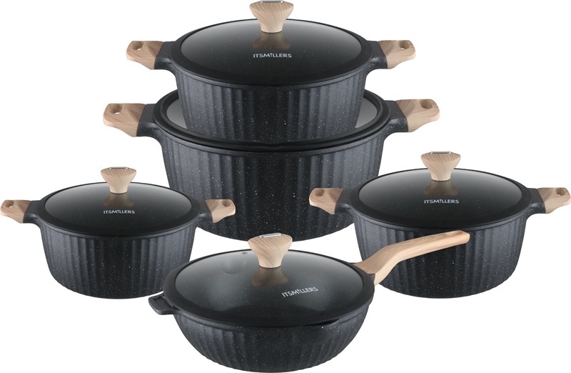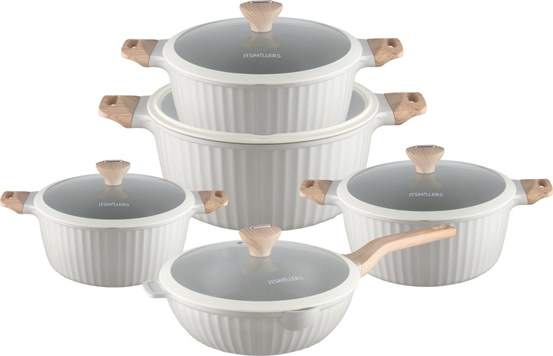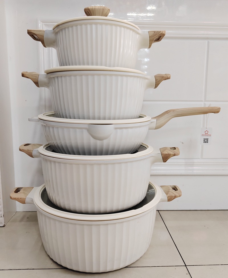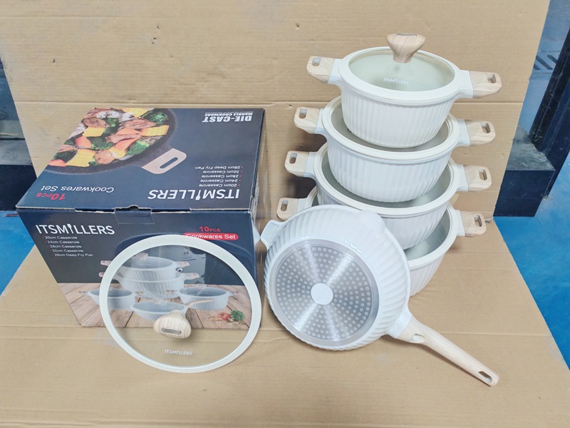 10pcs cookware set 10 juego de mármol antiadherente olla de aluminio fundido a presión de piedra médica olla de aluminio