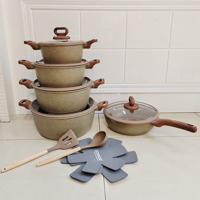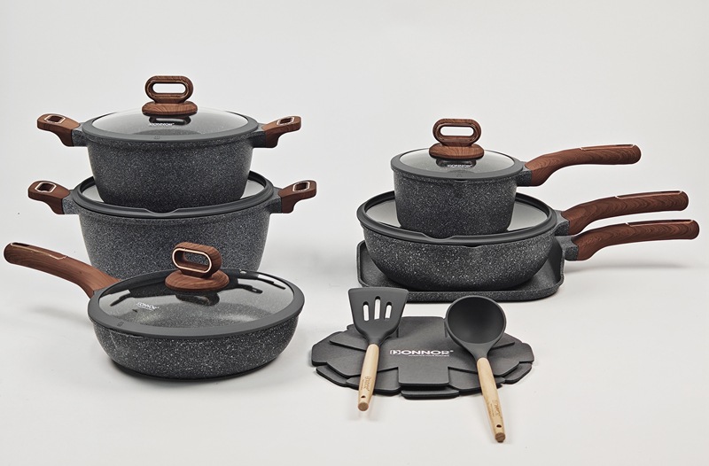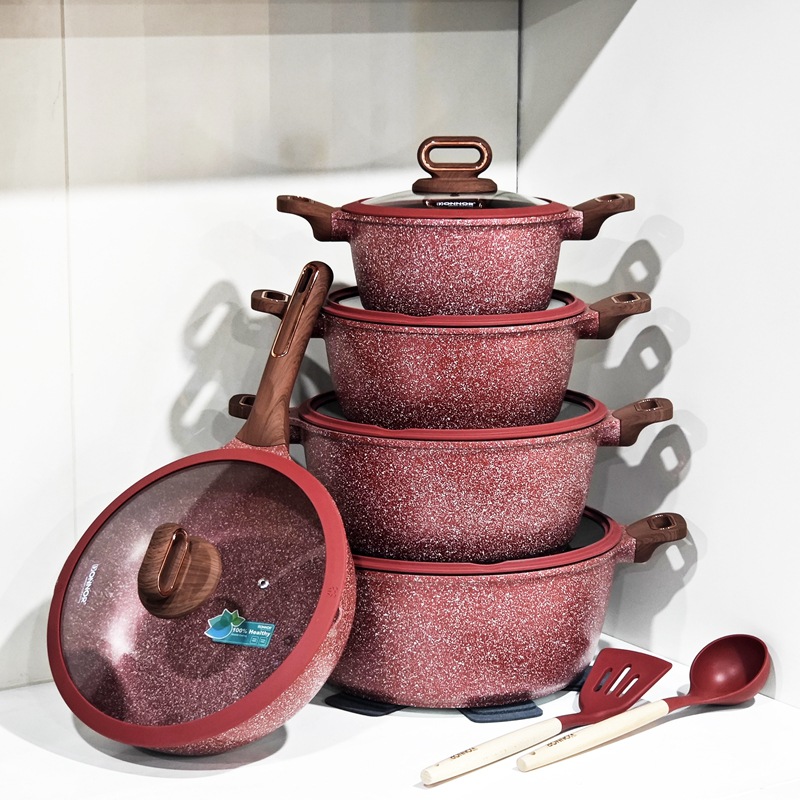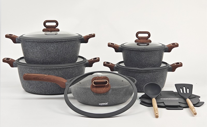 15/16pcs cookware set 15/16 juego antiadherente juego de olla de aluminio fundido a presión de piedra médica fuego de fondo