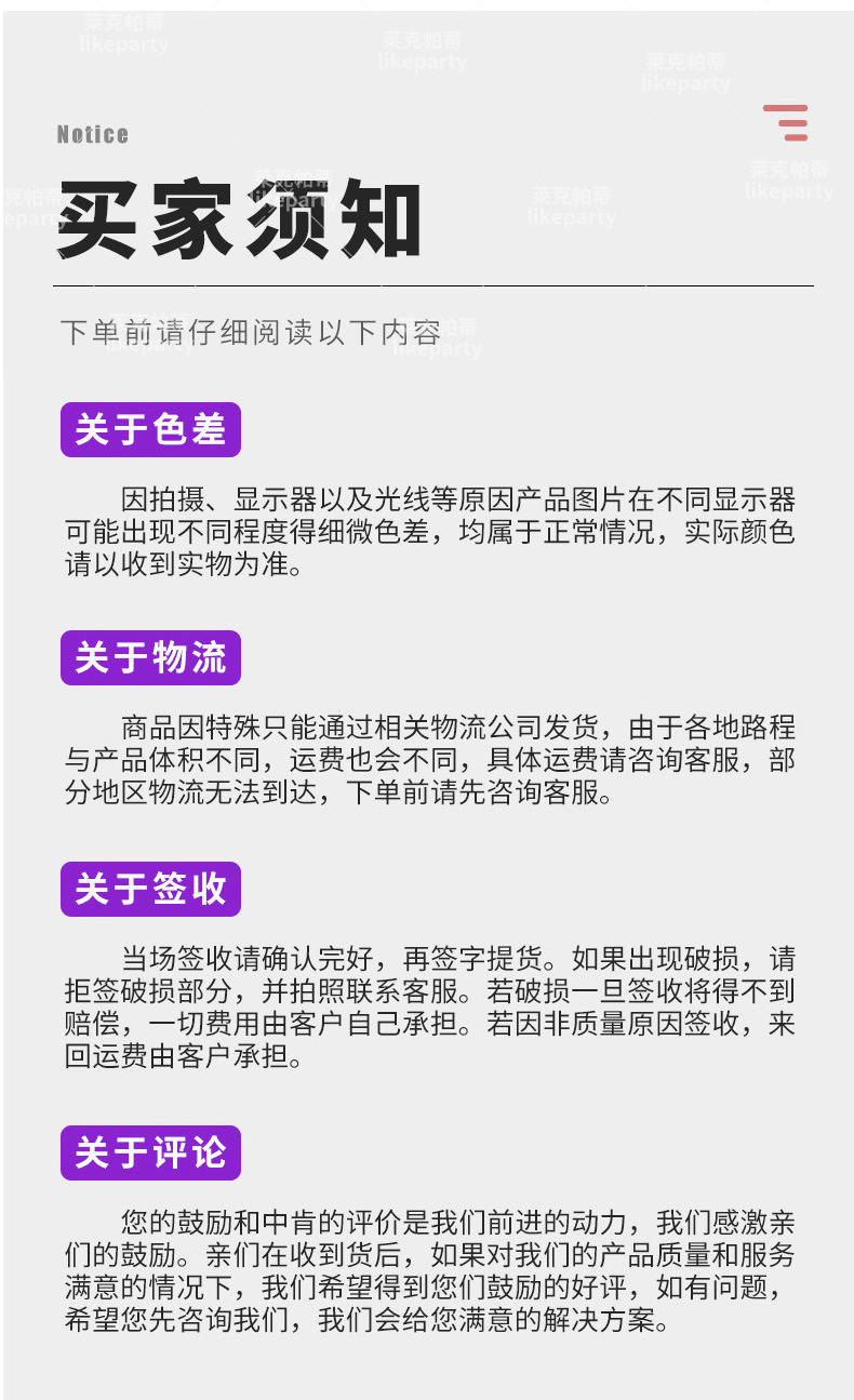 | Fiestas aplicables | Día de la Madre,Día de Acción de Gracias,Día del Maestro,Día de Año Nuevo,Tanabata,Halloween,Pascua,Festival del Bote del Dragón,Día nacional,Día del Niño,Día de la Mujer,Día de la Independencia,Temporada de graduación,Festival de Gurbang,Otros |