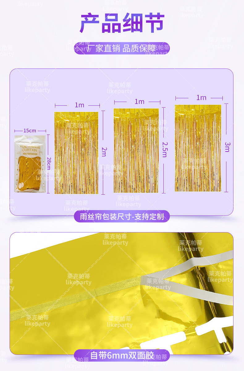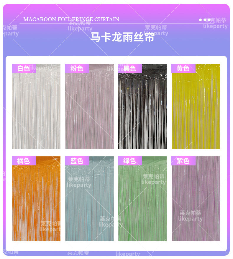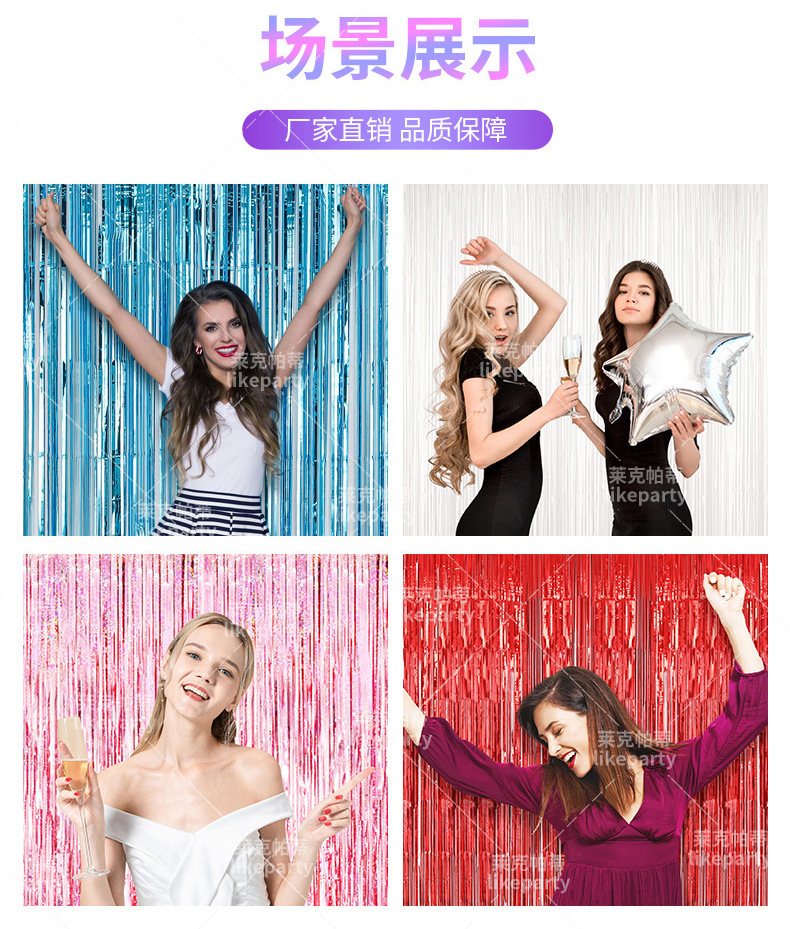 Cortina de lluvia de colores de alto brillo transfronteriza decoración de fiesta de cumpleaños cortina de lluvia láser de macaron brillante de 1*2 m