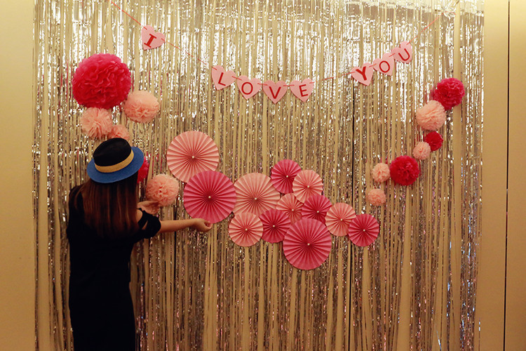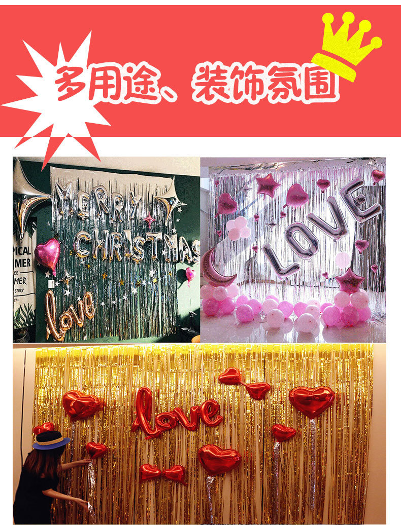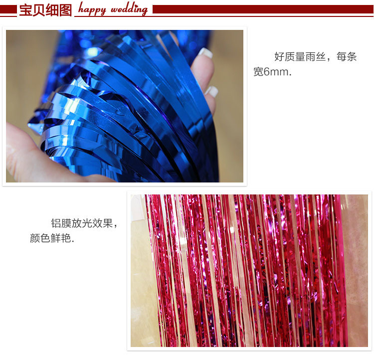 Cortina de lluvia, accesorios de decoración de cumpleaños, borlas, flores de dibujo, fondo de fiesta de boda, cortina de puerta de seda de lluvia de color 1*2m