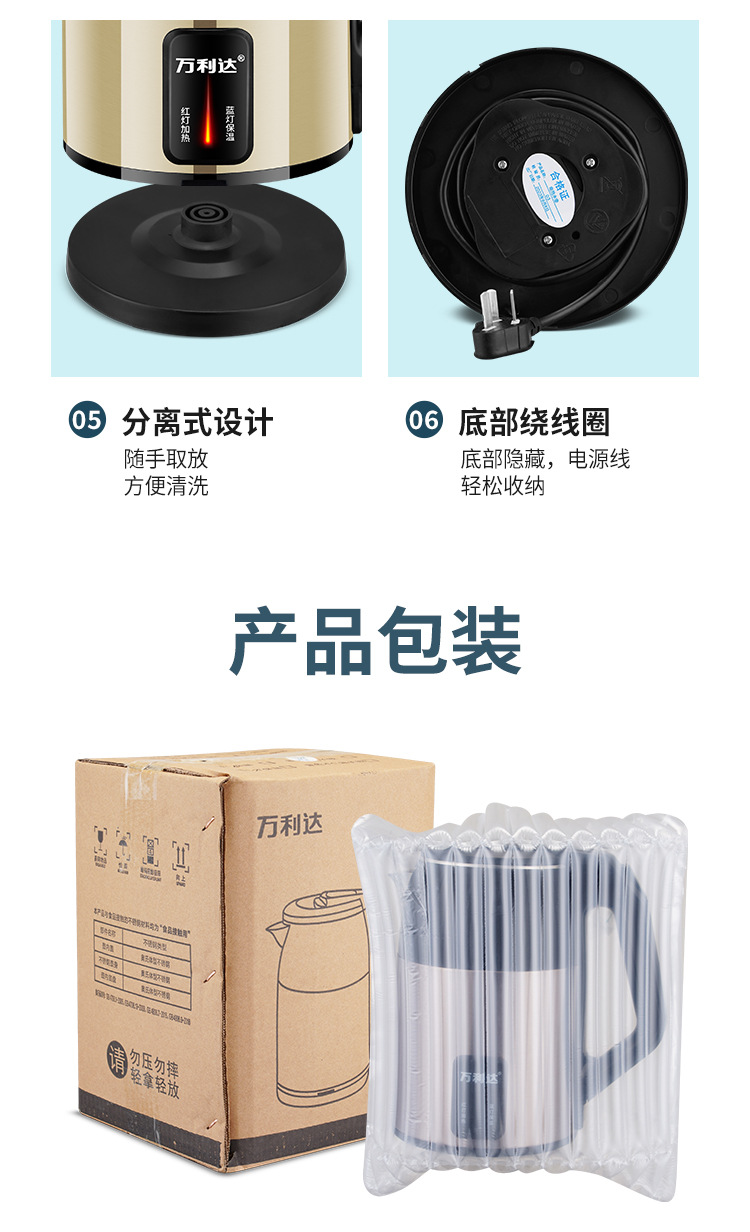 Wanlida tetera doméstica de gran capacidad, capacidad inteligente, automática y automática de apagado, tetera de acero inoxidable para agua caliente, tetera eléctrica