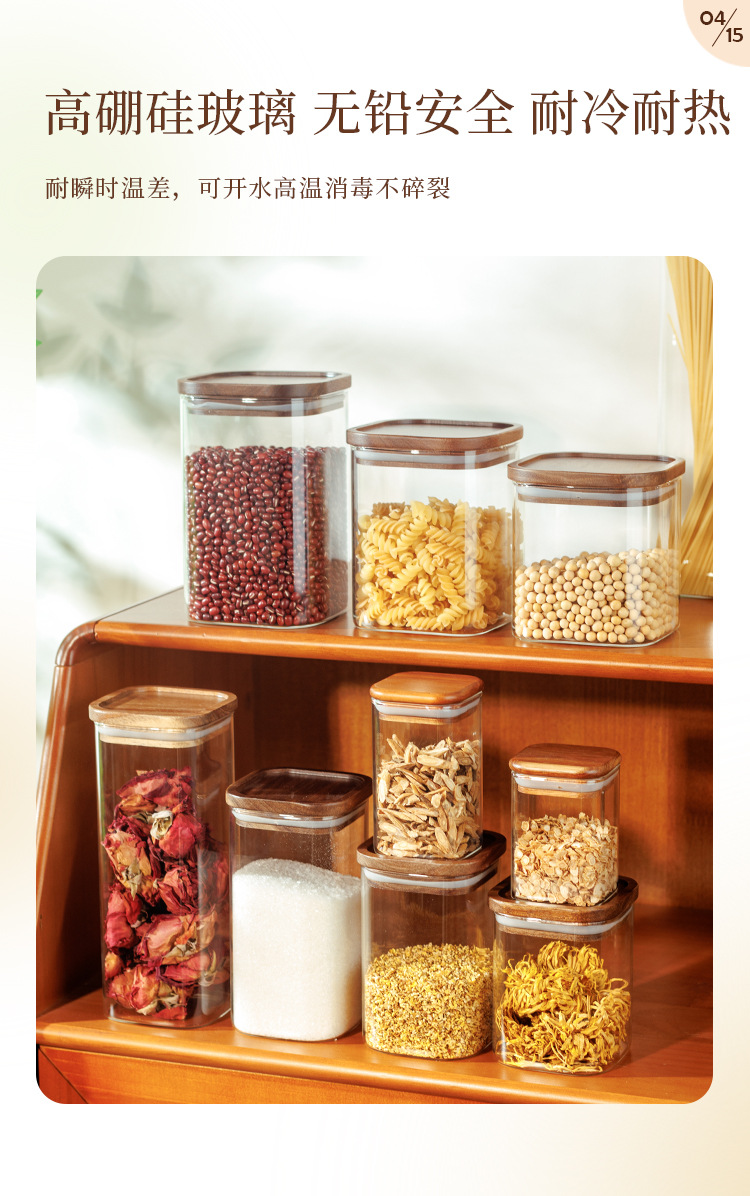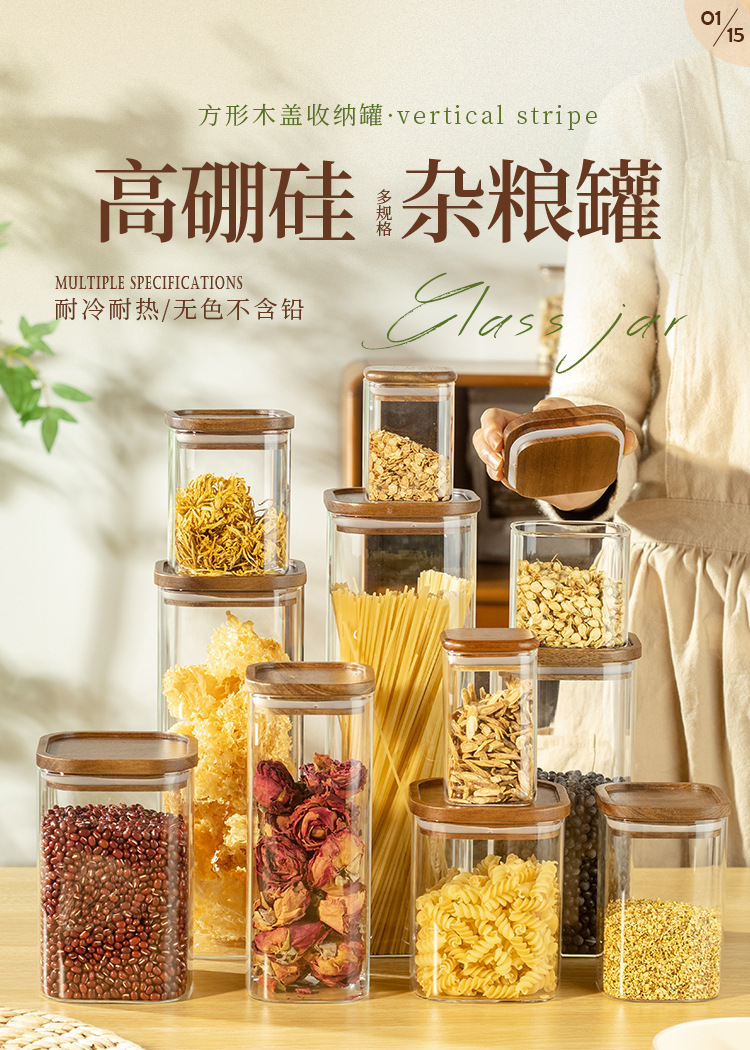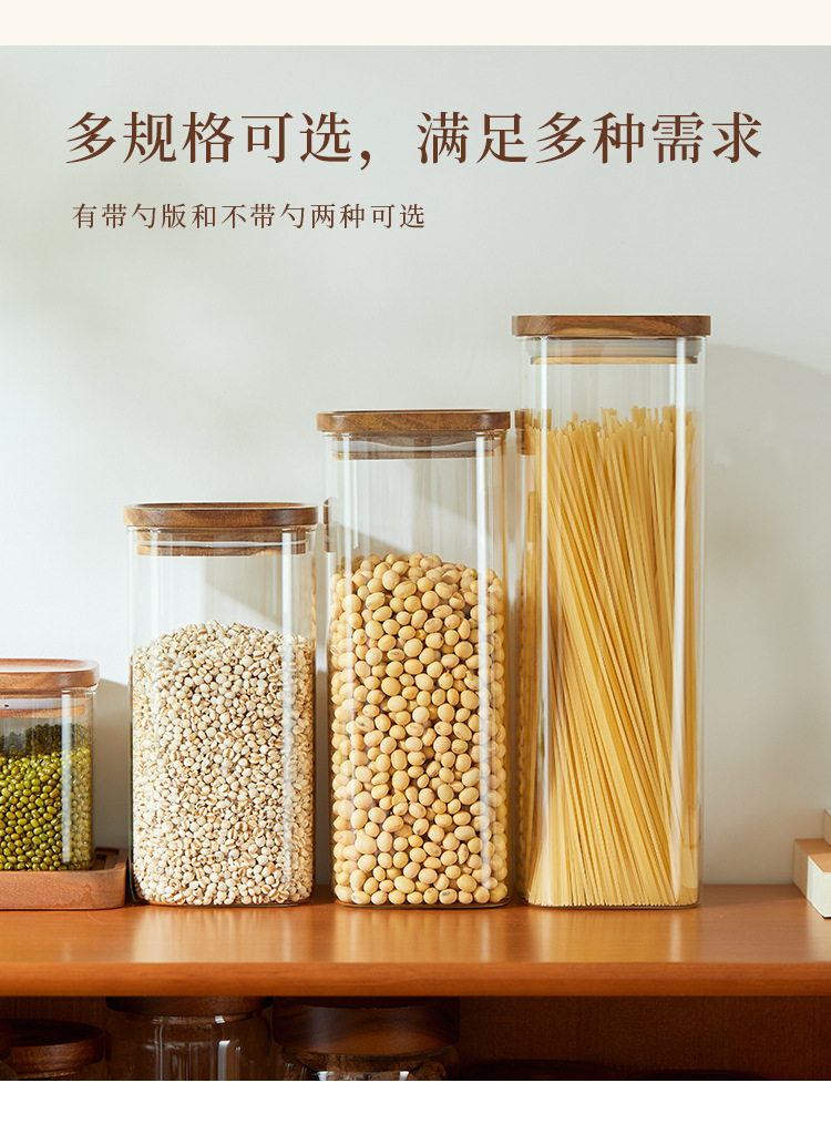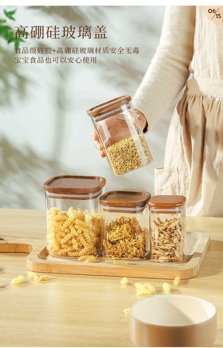Jarra de almacenamiento de vidrio de grado alimenticio para el hogar cocina granos de café té sellado jarra de almacenamiento para el hogar