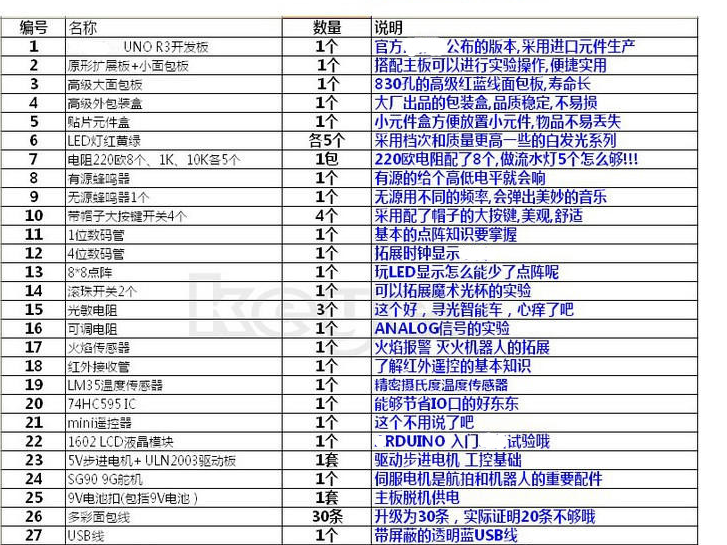 | Colores | Paquete RFID (versión mejorada),Paquete RFID (versión oficial),Kit para principiantes (versión mejorada),Kit para principiantes (versión oficial),UNO R3 solo (placa base oficial),UNO R3 solo (placa base mejorada) |