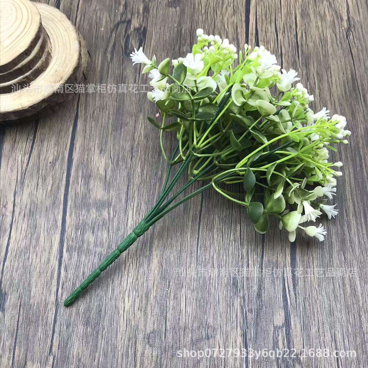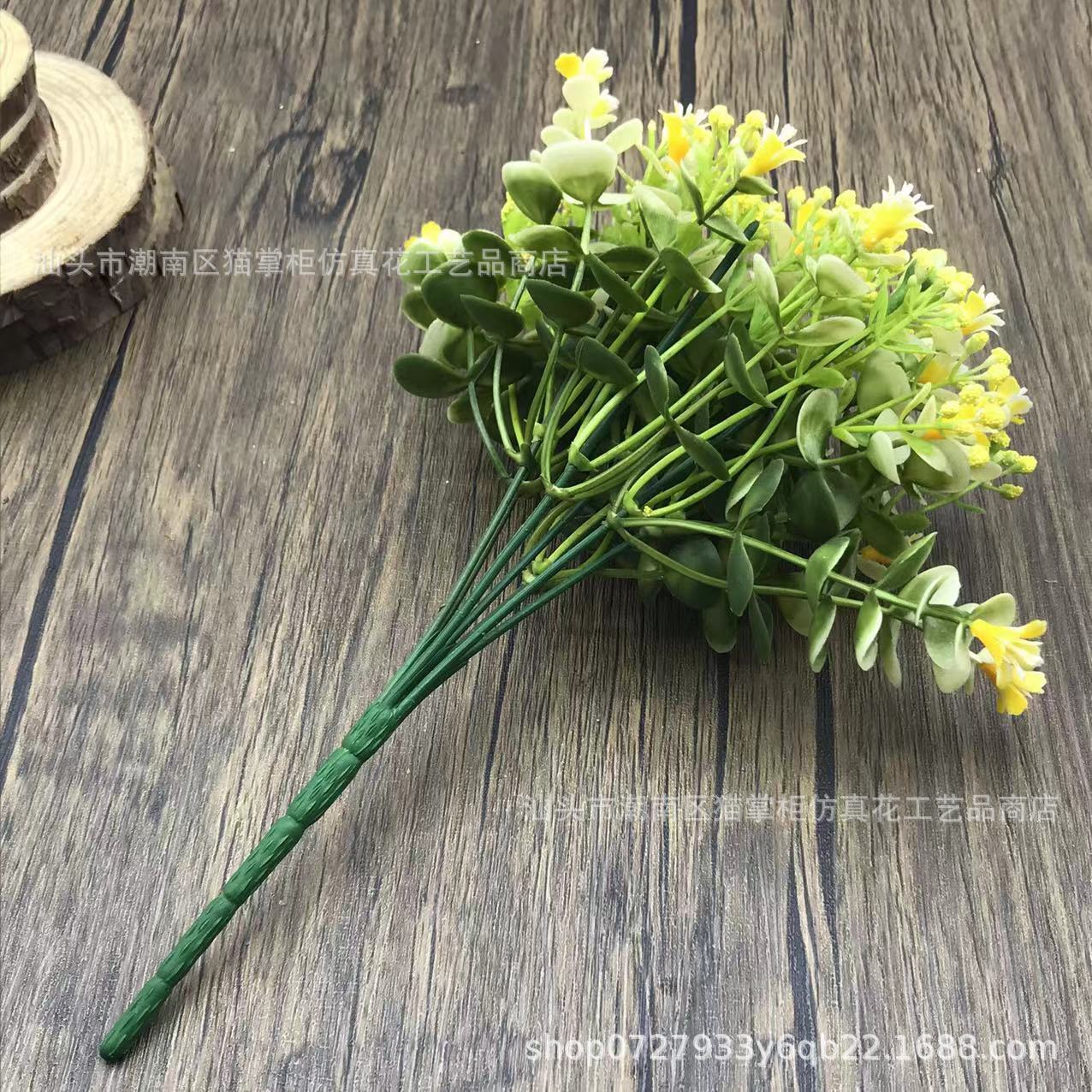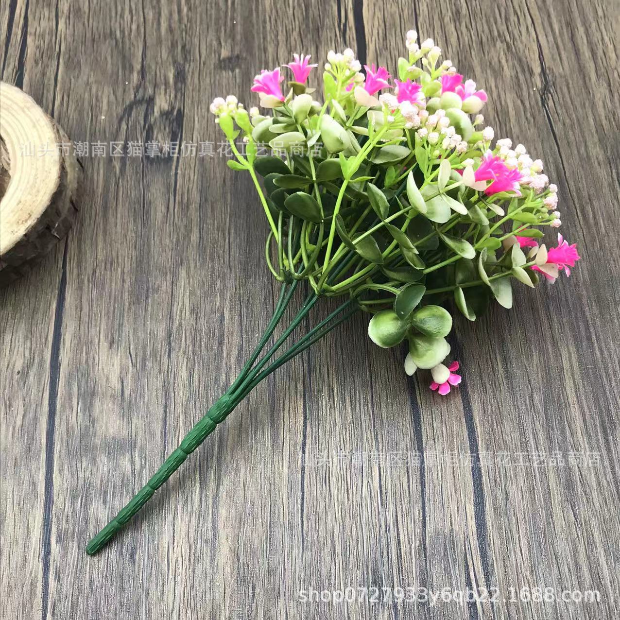 Decoración de flores artificiales de tres puntas, violeta eucalipto, hogar de bodas, 6 flores falsas, ramos de mano, accesorios de tiro