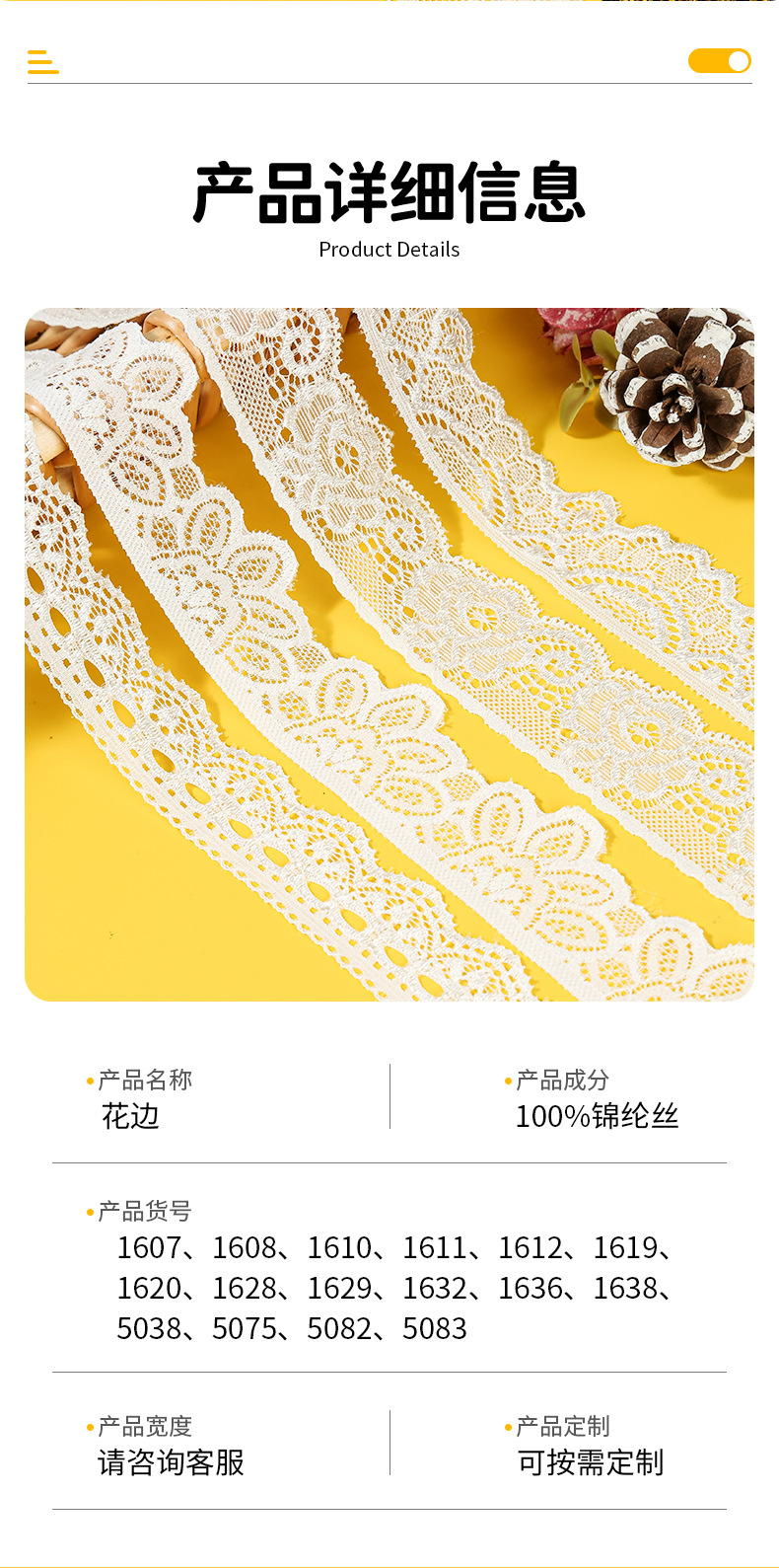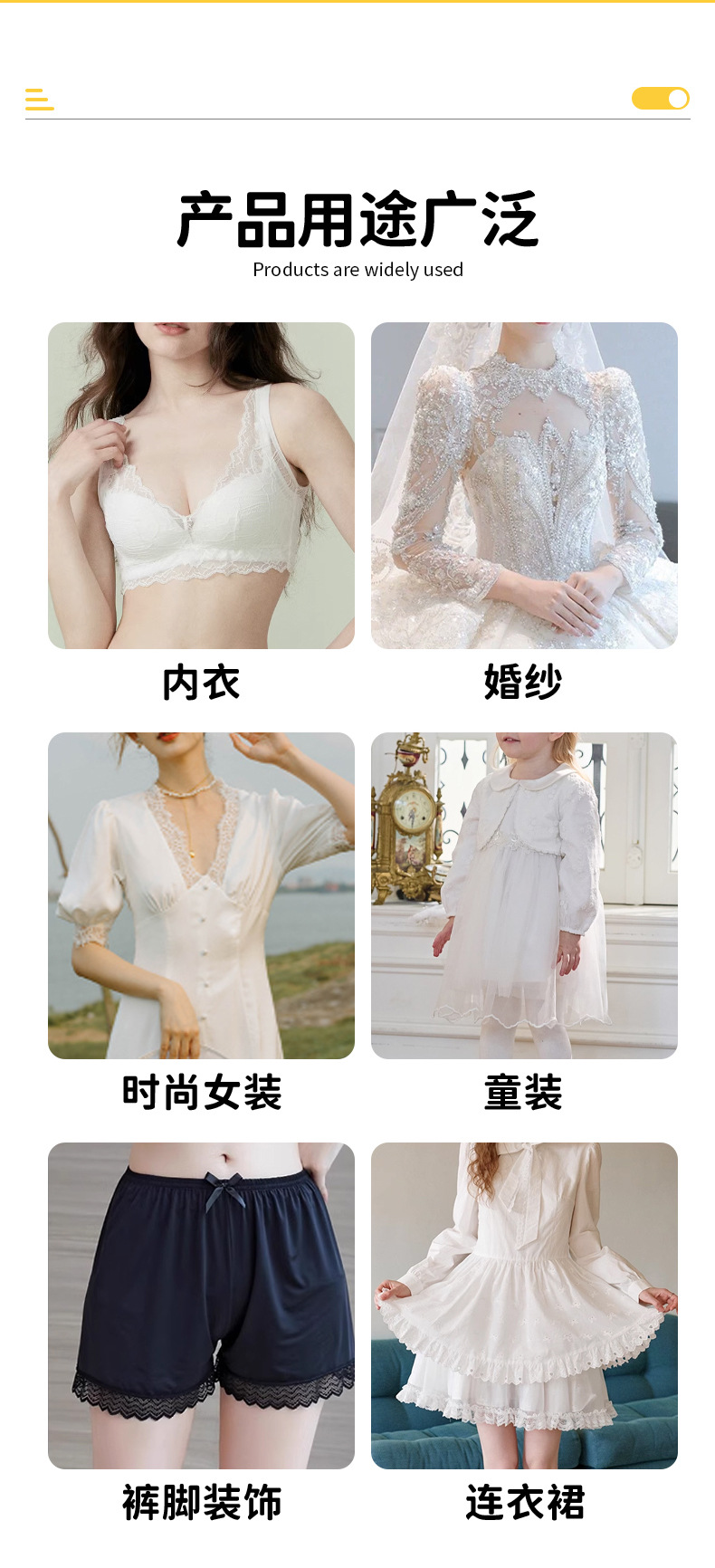 | Ámbito de aplicación | Pijamas,Ropa interior,Ropa de mujer,Tocado,Hogar,Cortinas,Vestido de novia,Ropa,Sujetador,Ropa para niños,Textiles para el hogar,Hecho a mano de bricolaje,Falda,Vestido de mamá,Ropa interior de encaje,Ropa interior para el hogar |