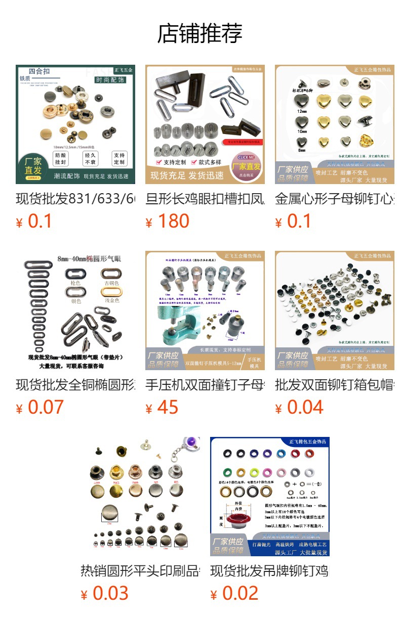 | Modelo de especificación | Molde de hebilla de ojo de pollo prensa manual de 1,5mm,Molde de hebilla de ojo de pollo prensa manual de 2mm,Molde de hebilla de ojo de pollo prensa manual de 2,5mm,Molde de hebilla de ojo de pollo prensa manual de 3mm,Molde de hebilla de ojo de pollo prensa manual de 3,5mm,Molde de hebilla de ojo de pollo prensa manual de 4mm,Molde de hebilla de ojo de pollo prensa manual de 4,5mm,Molde de hebilla de ojo de pollo prensa manual de 5mm,Molde de hebilla de ojo de pollo prensa manual de 6mm,Molde de hebilla de ojo de pollo prensa manual de 8mm,Molde de hebilla de ojo de pollo prensa manual de 10mm,Molde de hebilla de ojo de pollo prensa manual de 12mm,1 juego de prensa manual de fundición de hierro de alta densidad gruesa y pesada (metal desnudo),1 juego de prensa manual portátil de aleación de aluminio (metal desnudo),Molde de hebilla de ojo de pollo prensa manual de 14mm,Molde de hebilla de ojo de pollo prensa manual de 17mm,Molde de hebilla de ojo de pollo prensa manual de 20mm,Molde de hebilla de ojo de pollo prensa manual de 25mm,Molde de hebilla de ojo de pollo prensa manual de 30mm,Molde de hebilla de ojo de pollo prensa manual de 40mm,Molde de prensa manual de clavos de doble cara de 5mm,Molde de prensa manual de clavos de doble cara de 6mm,Molde de prensa manual de clavos de doble cara de 7mm,Molde de prensa manual de clavos de doble cara de 8mm,Molde de prensa manual de clavos de doble cara de 9mm,Molde de prensa manual de clavos de doble cara de 10mm,Molde de prensa manual de clavos de doble cara de 12mm |