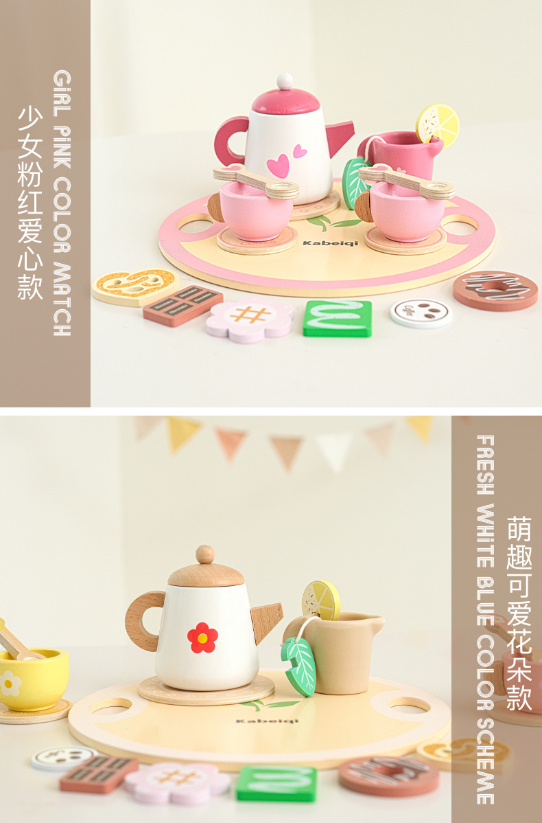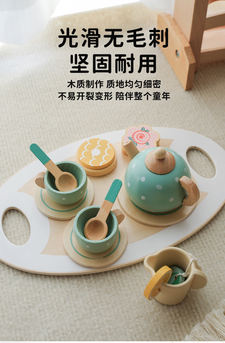 Simulación de educación temprana para niños, té de la tarde, juego de té, taza de tetera, juego de té, simulación de juguete cognitivo de madera