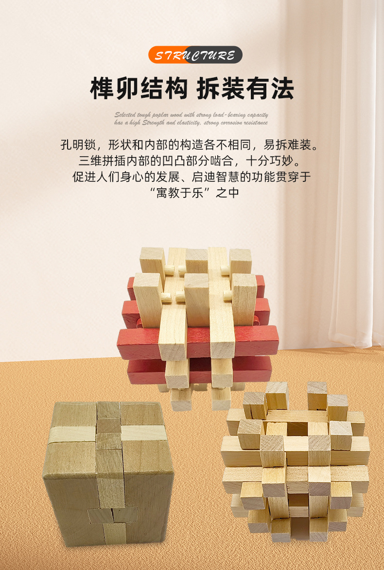 Luban Lock Kongming Lock Juego completo de juguetes de inteligencia de espiga y espiga educativos para niños Juguetes de desmontaje difíciles al por mayor