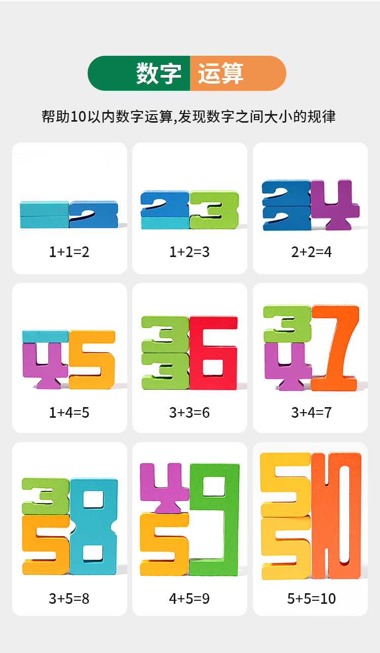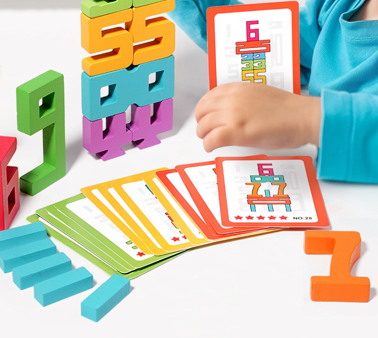 Cpc bloques de construcción de números de madera para niños rompecabezas de quema de cerebro rompecabezas de educación temprana para bebés juego cognitivo de números de color tridimensional