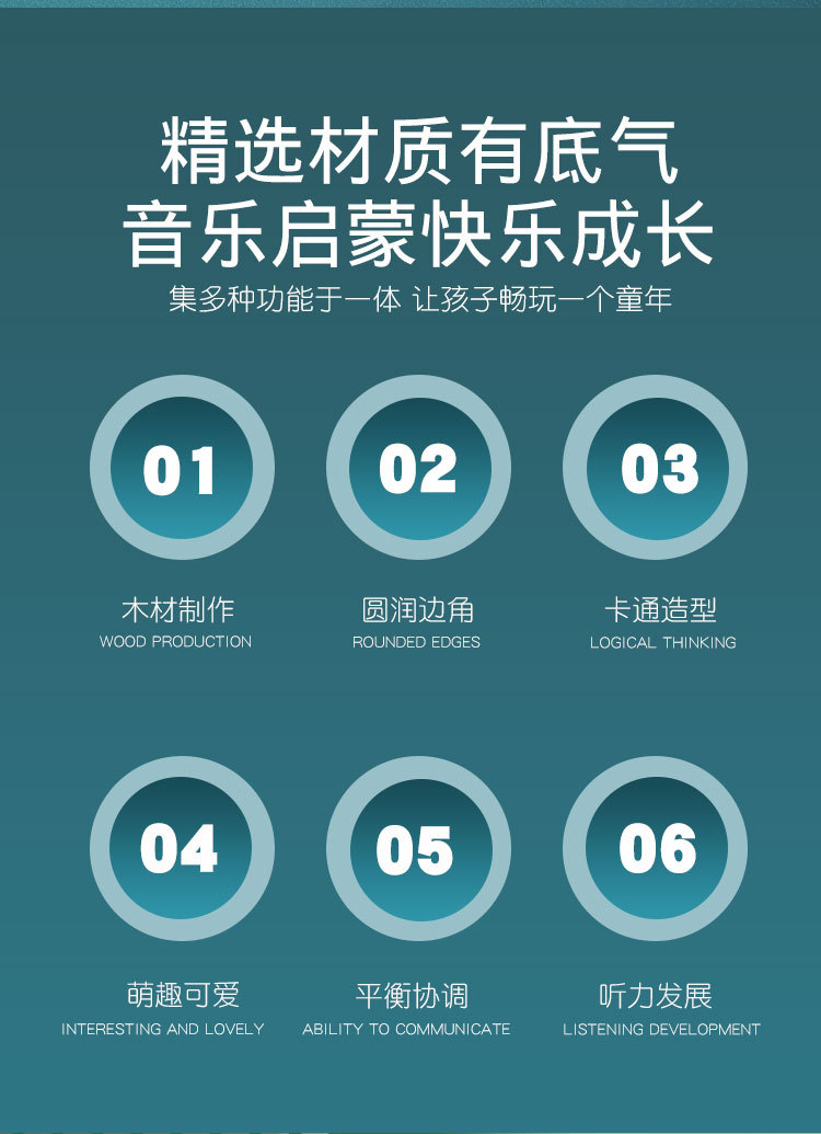 Dibujos animados de madera para niños animal Louver Orff instrumento musical redondo educación de la primera infancia Ilustración instrumento musical educativo tablero