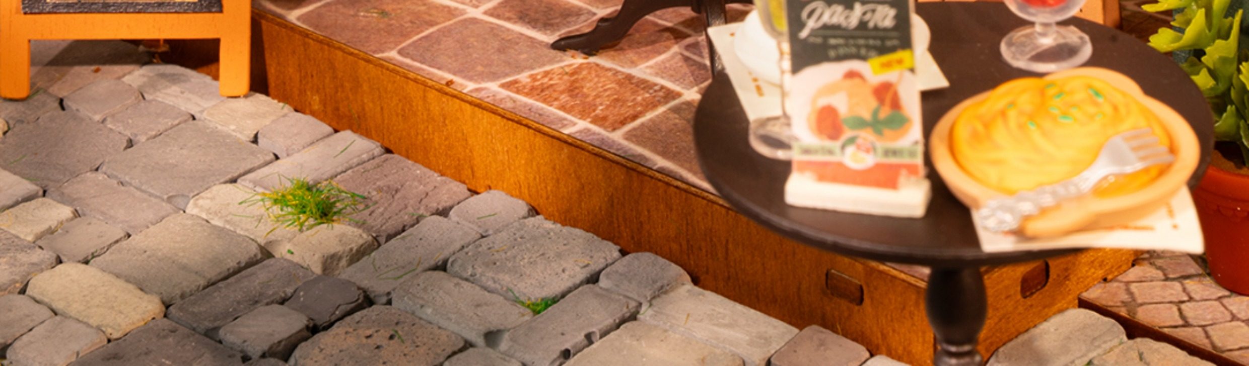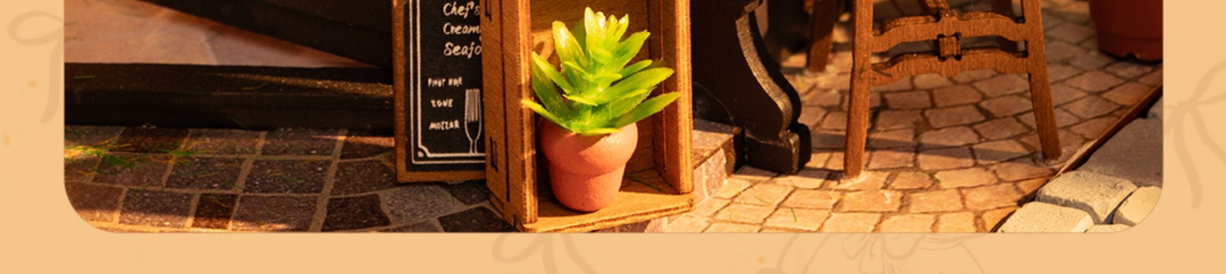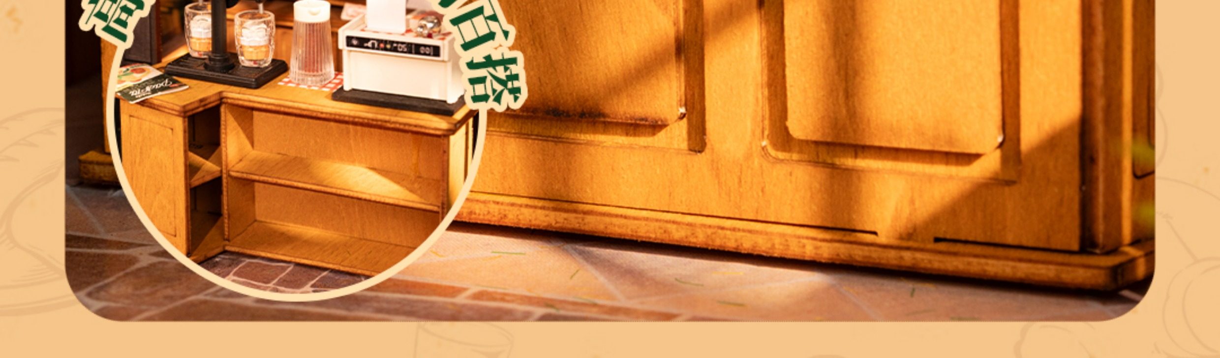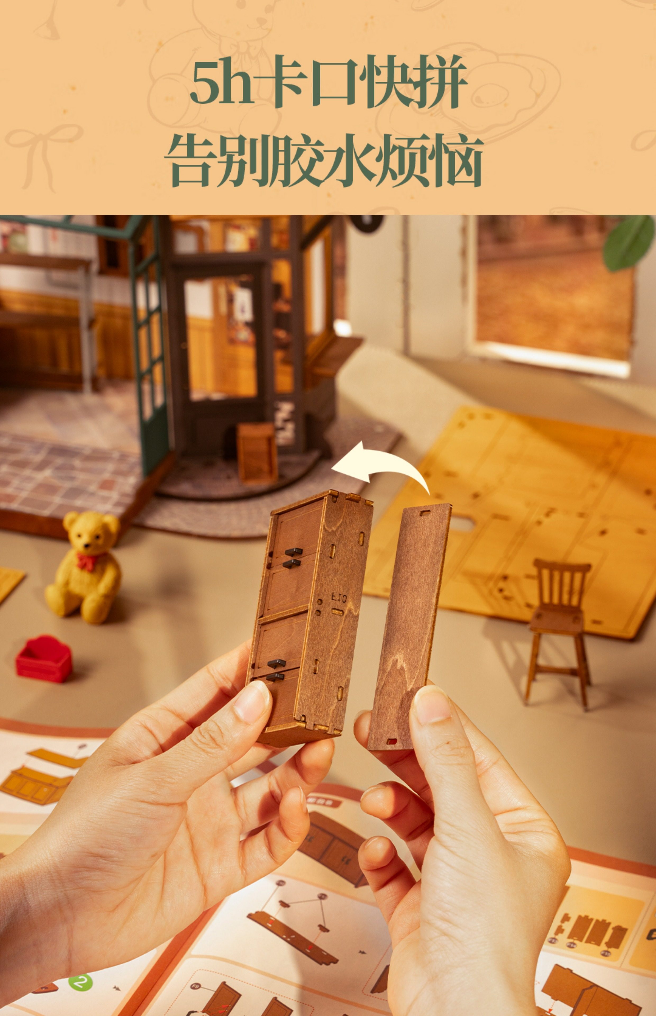 Rollife Ruo Lai Bear Dining Bar Cabaña hecha a mano de bricolaje Modelo de miniatura Casa de juguete ensamblado Bloques de construcción Chica