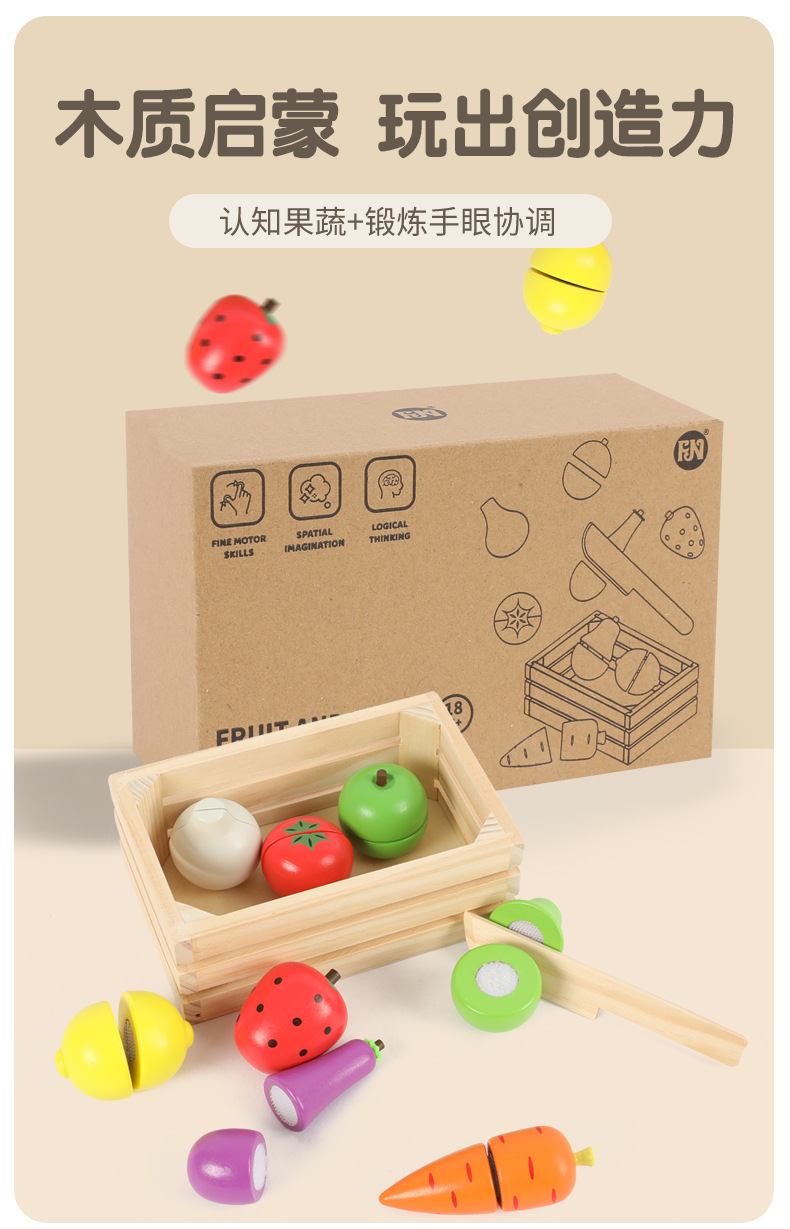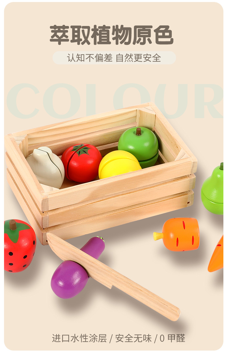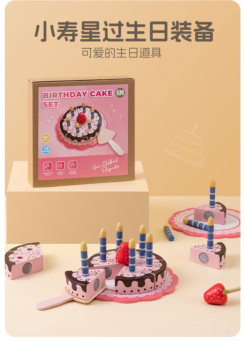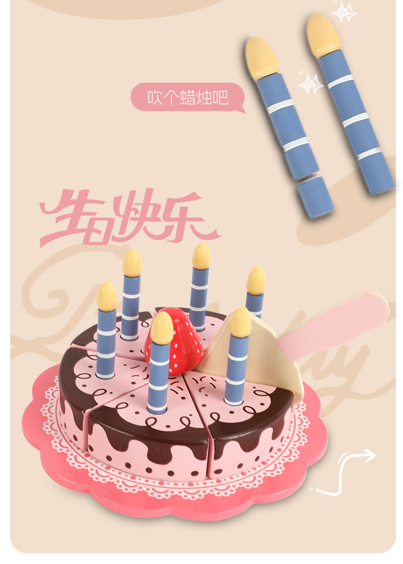 Madera niña niña pastel de cumpleaños té de la tarde fruta corte música cocinar simulación juguete de madera casita
