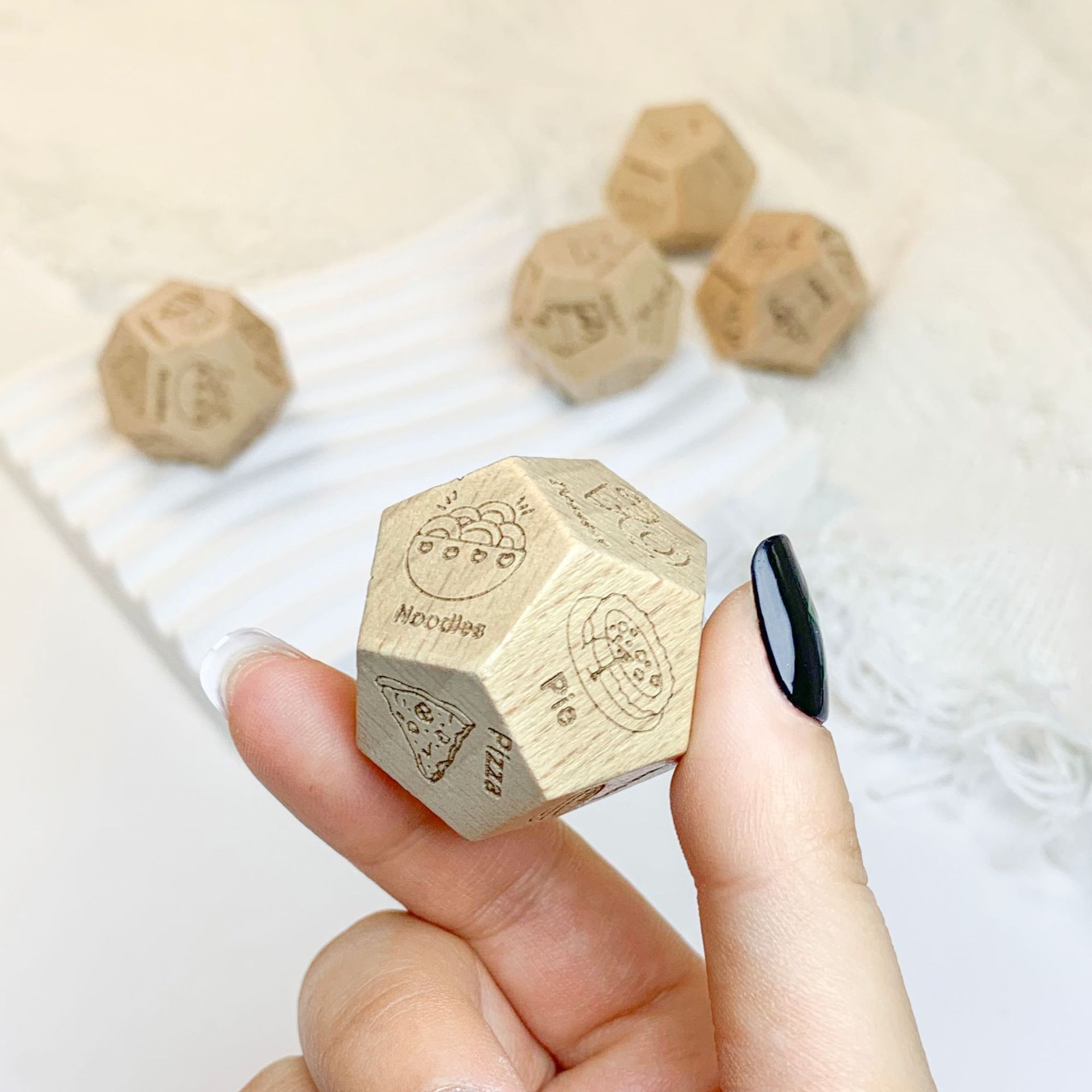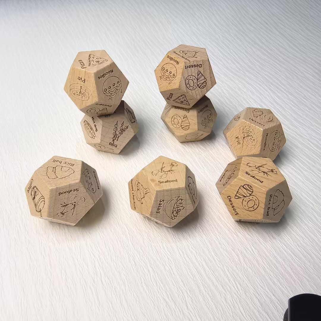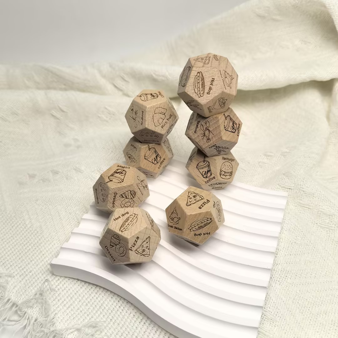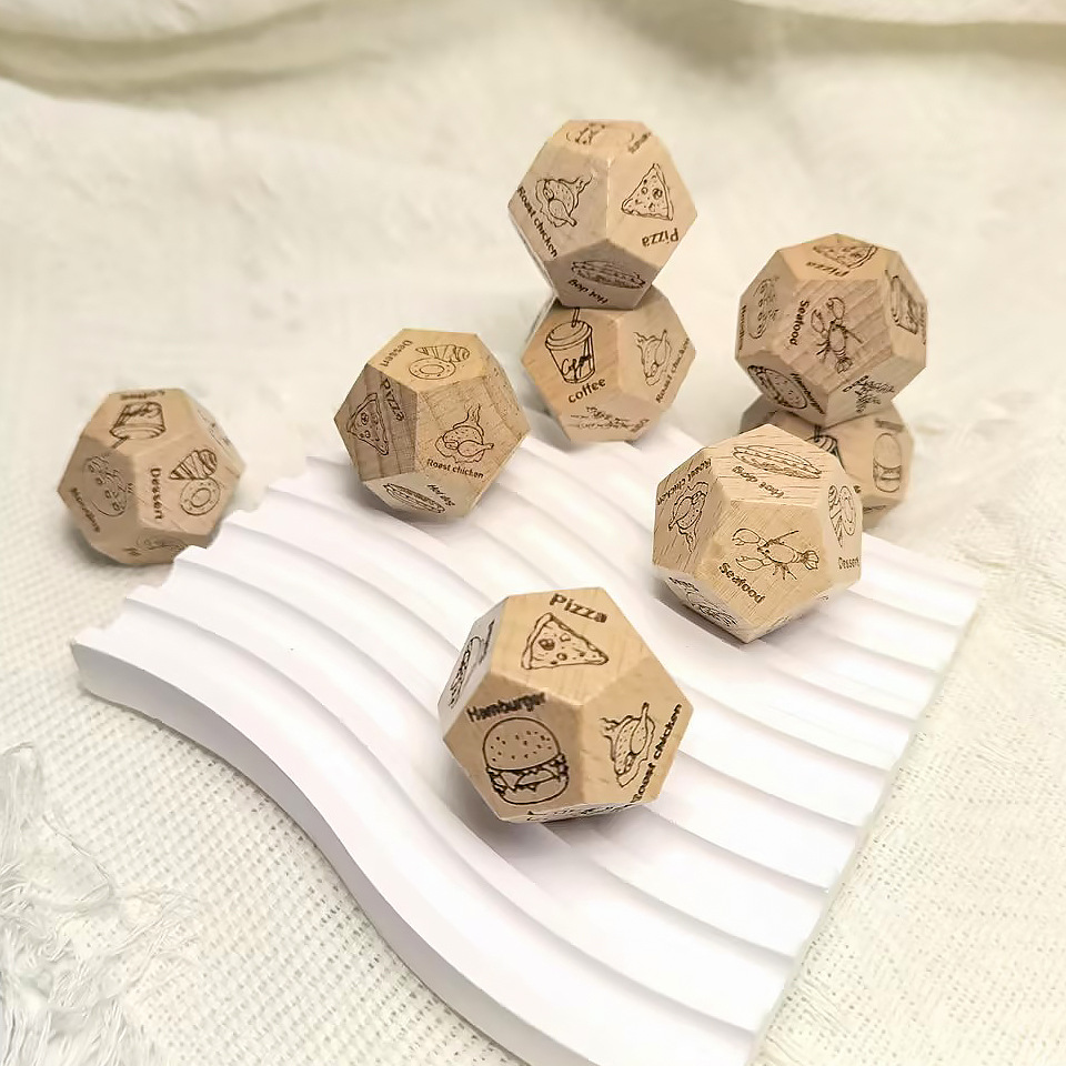 Dile adiós a los problemas de elegir material de madera de haya, 12 dados de comida, 12 opciones de comida, desbloquea la inspiración diaria