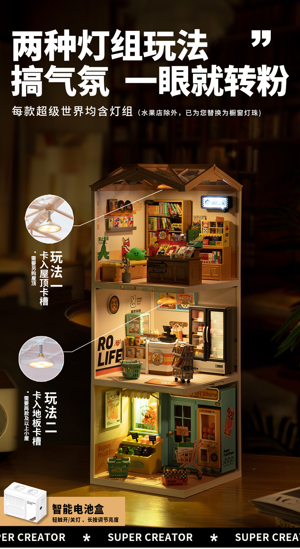 Ruolai super world store diy cottage modelo bloque de construcción de juguete tridimensional rompecabezas de los niños regalo de juguete educativo