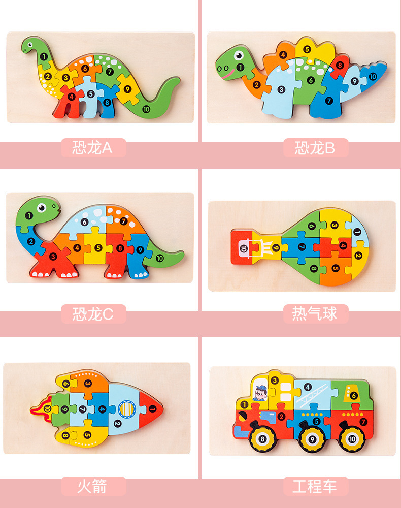 Juguetes educativos de madera para niños 4-6 acumulación de cognición de educación temprana animales de madera, combinación de formas, rompecabezas 3D