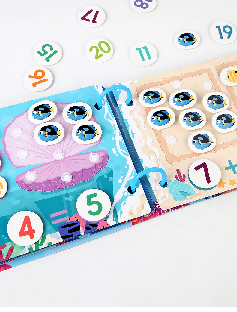 Educación temprana transfronteriza libro ocupado libro silencioso rompecabezas cognitivo alfanumérico libro pegado repetidamente juguetes educativos