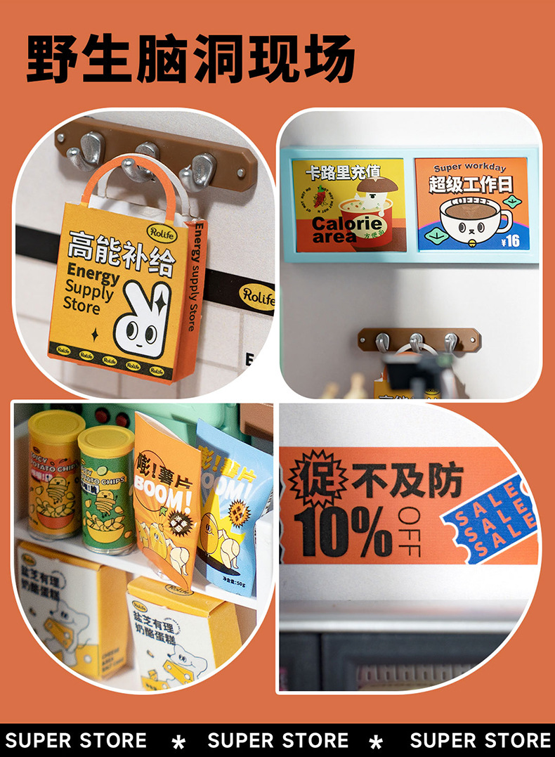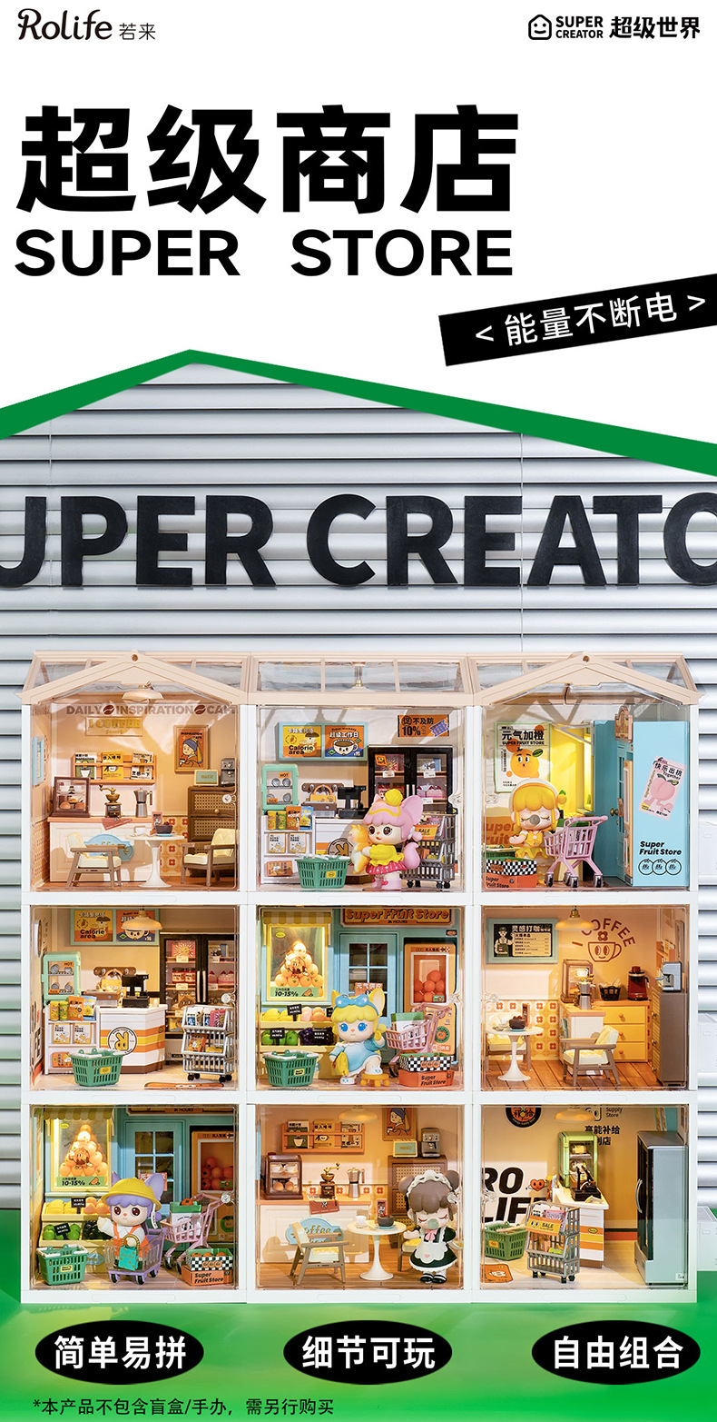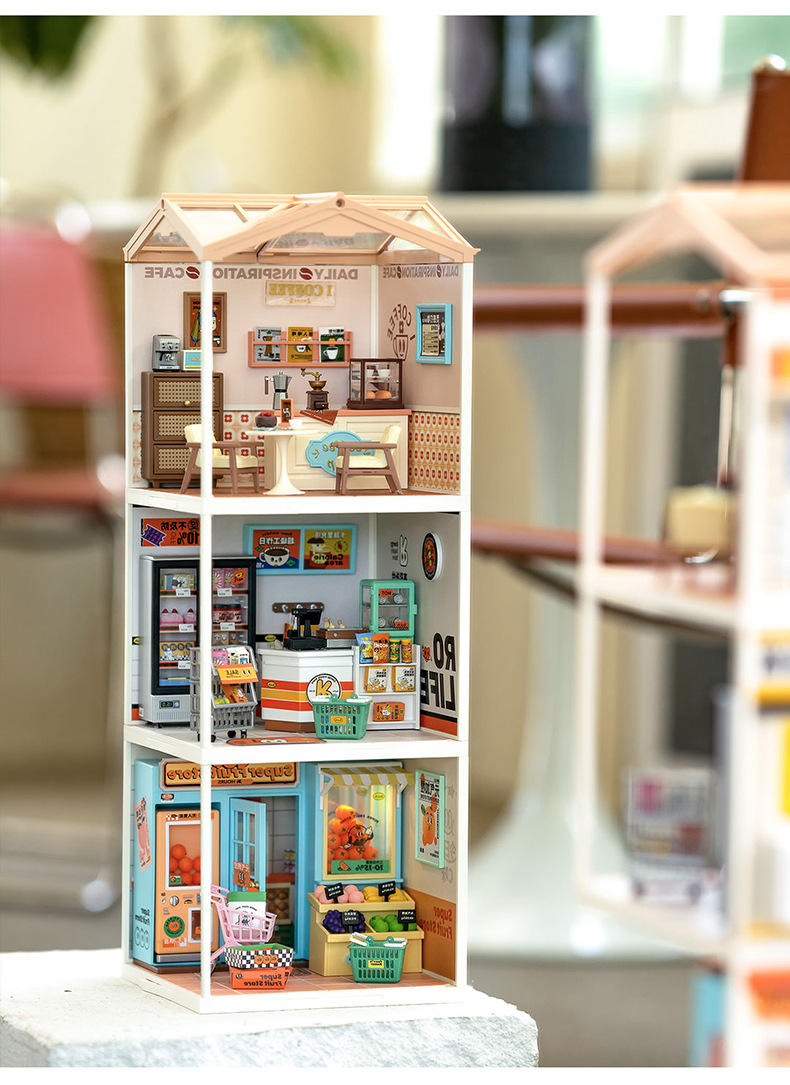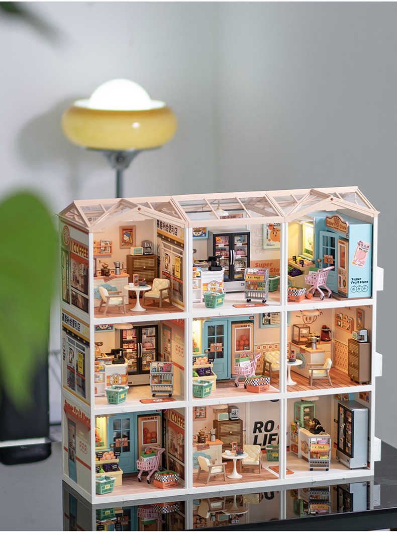 Ruo Lai Super World Store Diy Cottage 3D Bloques de construcción ensamblados 3D Juguetes Rompecabezas hechos a mano Model House