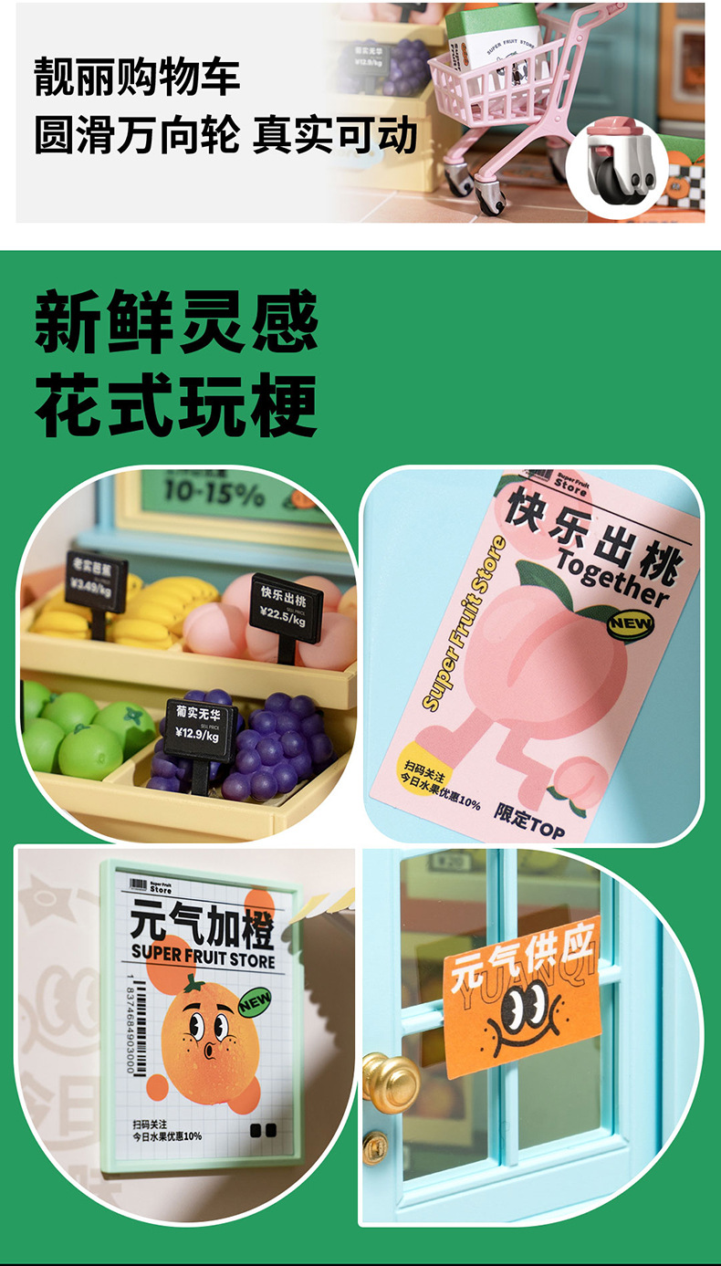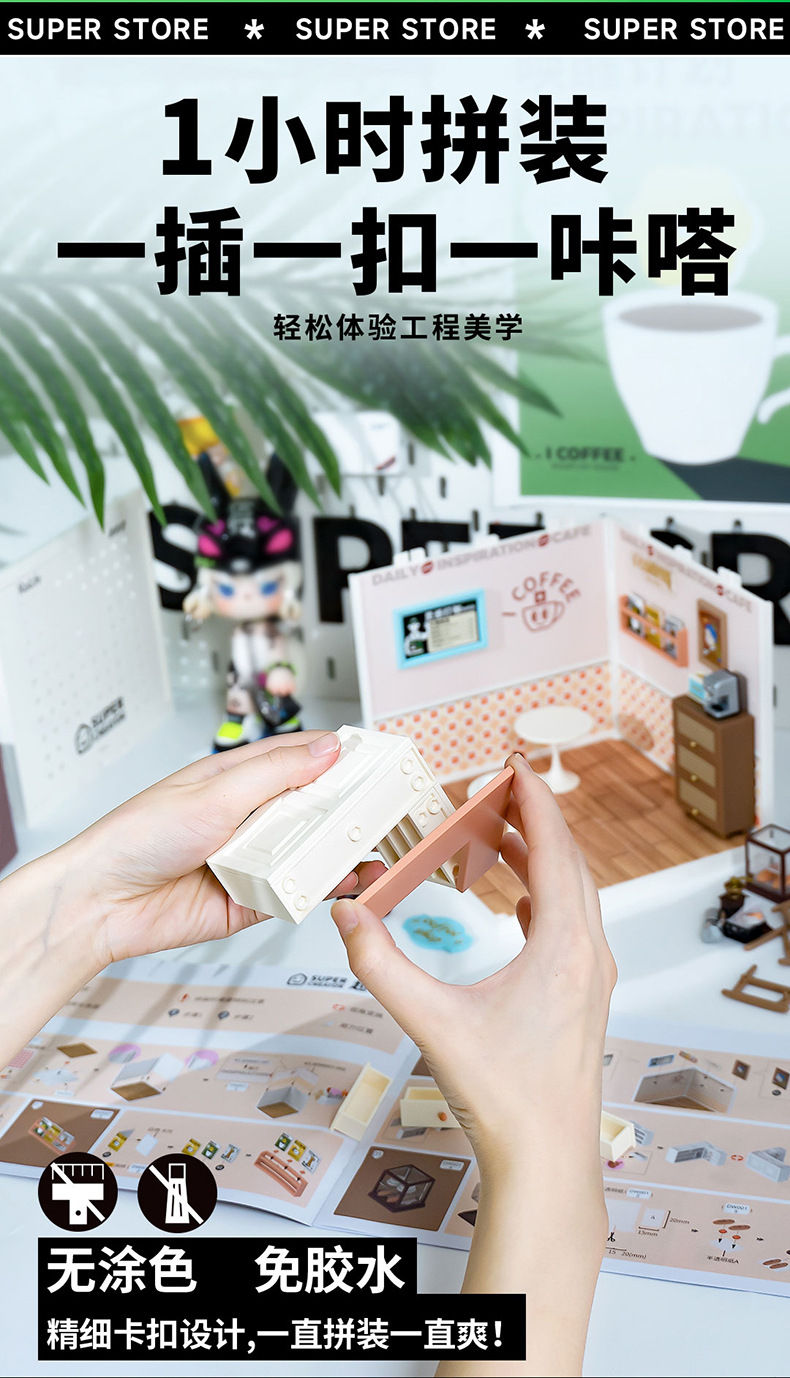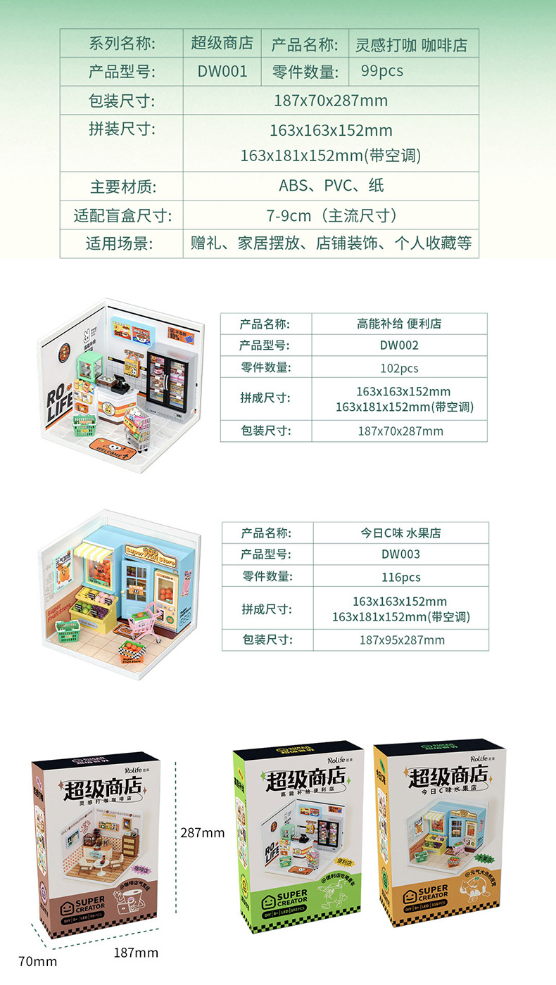 Ruo Lai Super World Store Diy Cottage 3D Bloques de construcción ensamblados 3D Juguetes Rompecabezas hechos a mano Model House