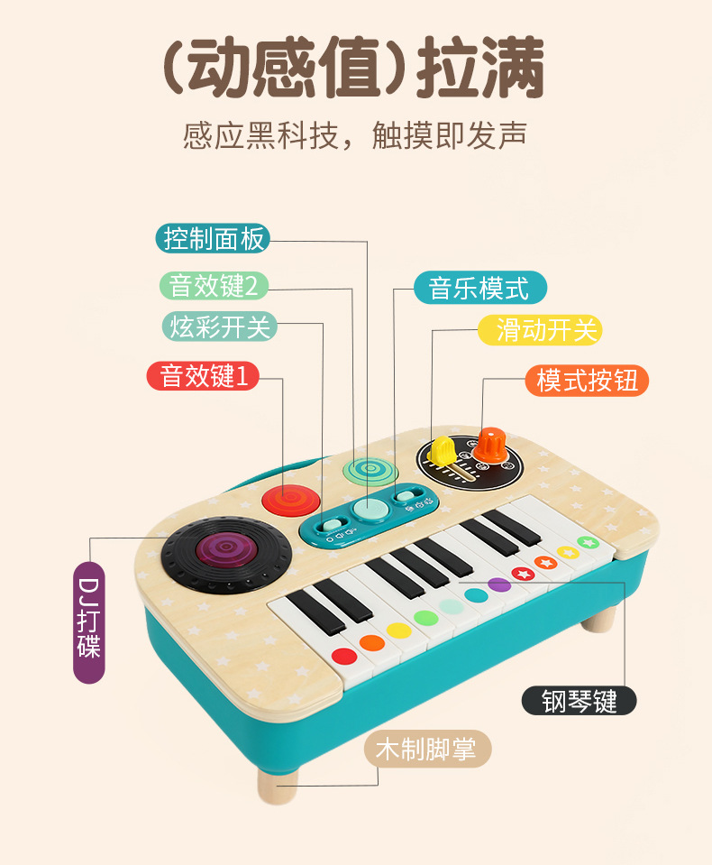Mesa DJ dinámica para niños Juguetes educativos para bebés Niños y niñas Jardín de infantes Juguetes multifuncionales de educación temprana Regalos de instrumentos musicales