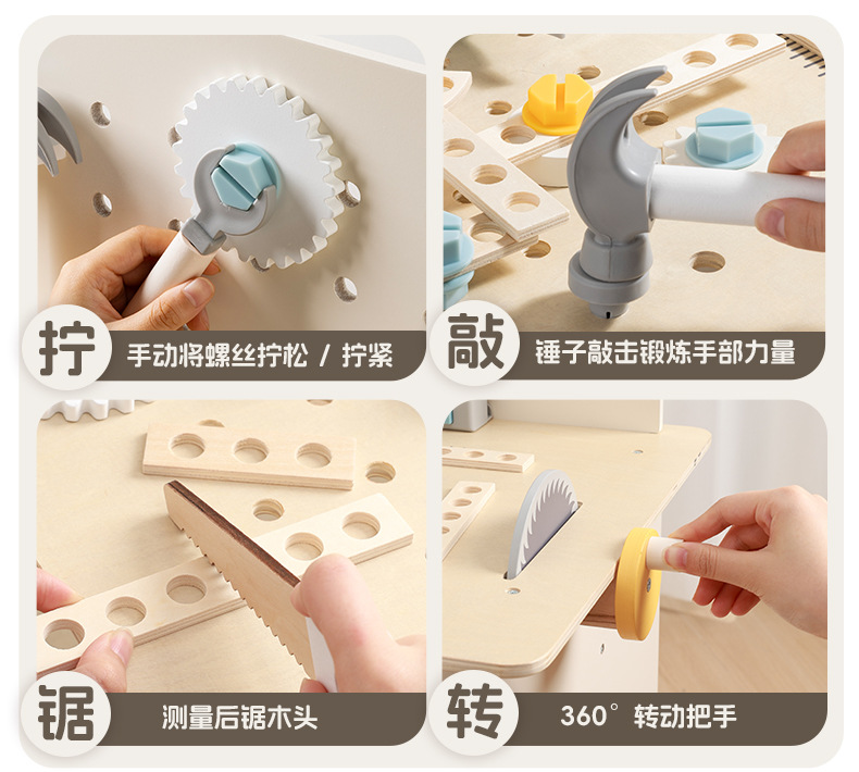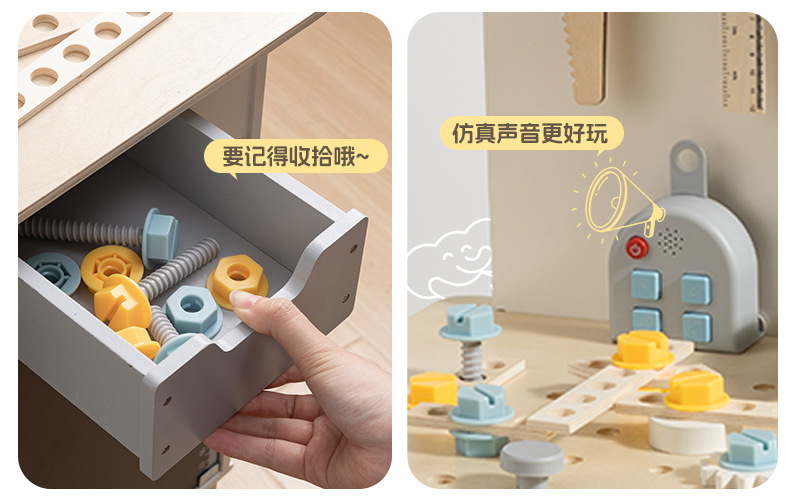 Banco de trabajo de madera de simulación Caja de herramientas de ensamblaje de rompecabezas para niños Tornillo de tornillo Juego de herramientas multifunción Juguetes de madera