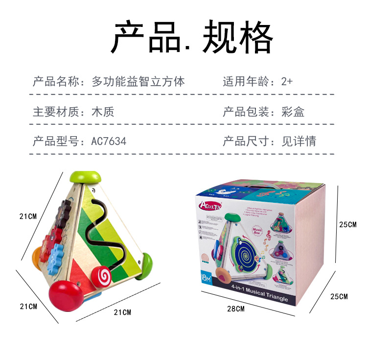 Caja de música triangular de madera multifuncional para niños, juguetes, inteligencia para bebés, educación temprana, cerebro práctico, inteligencia, juegos ocupados