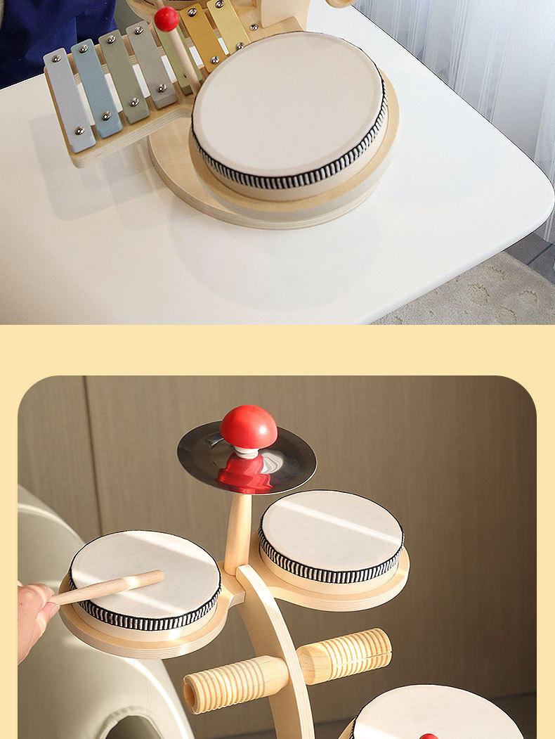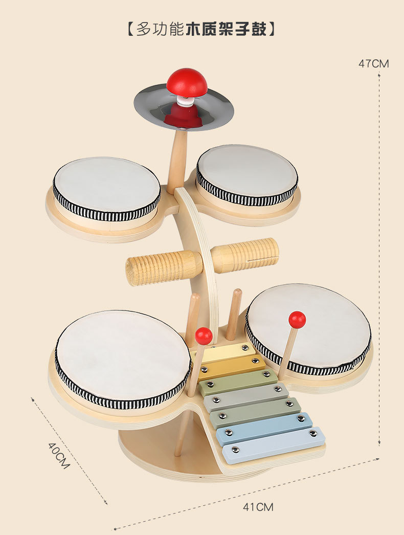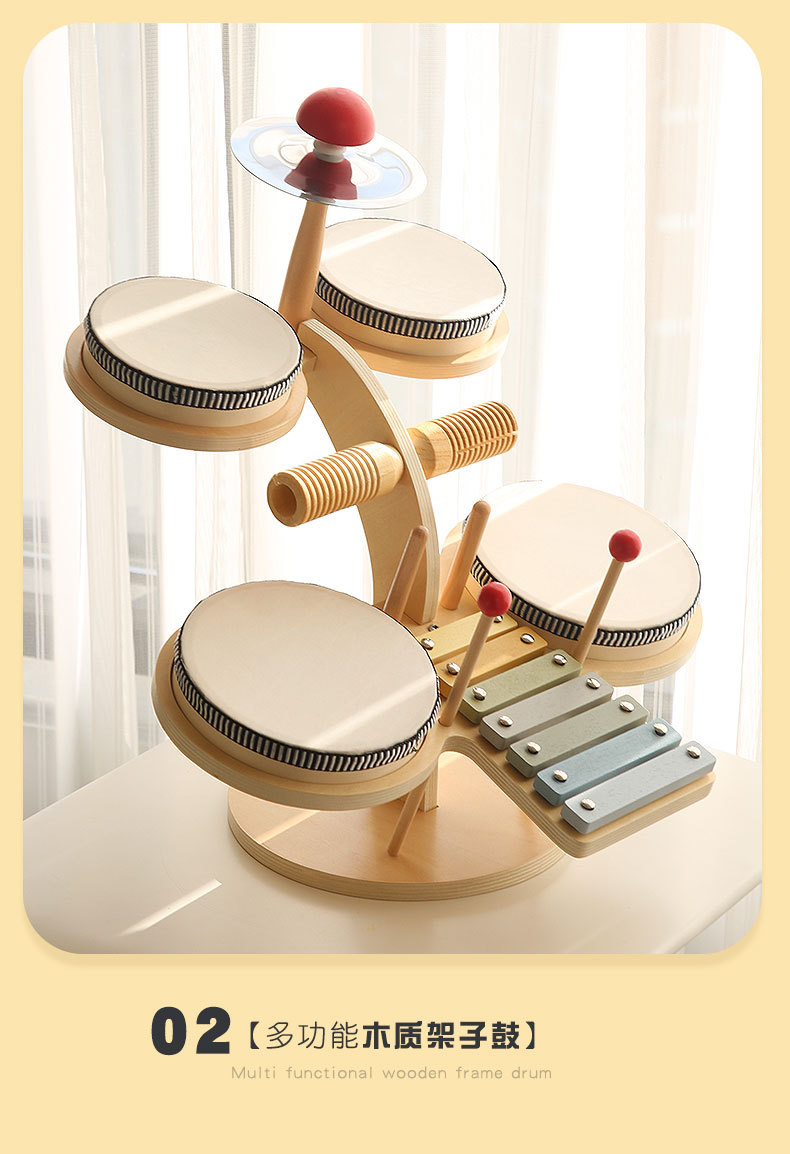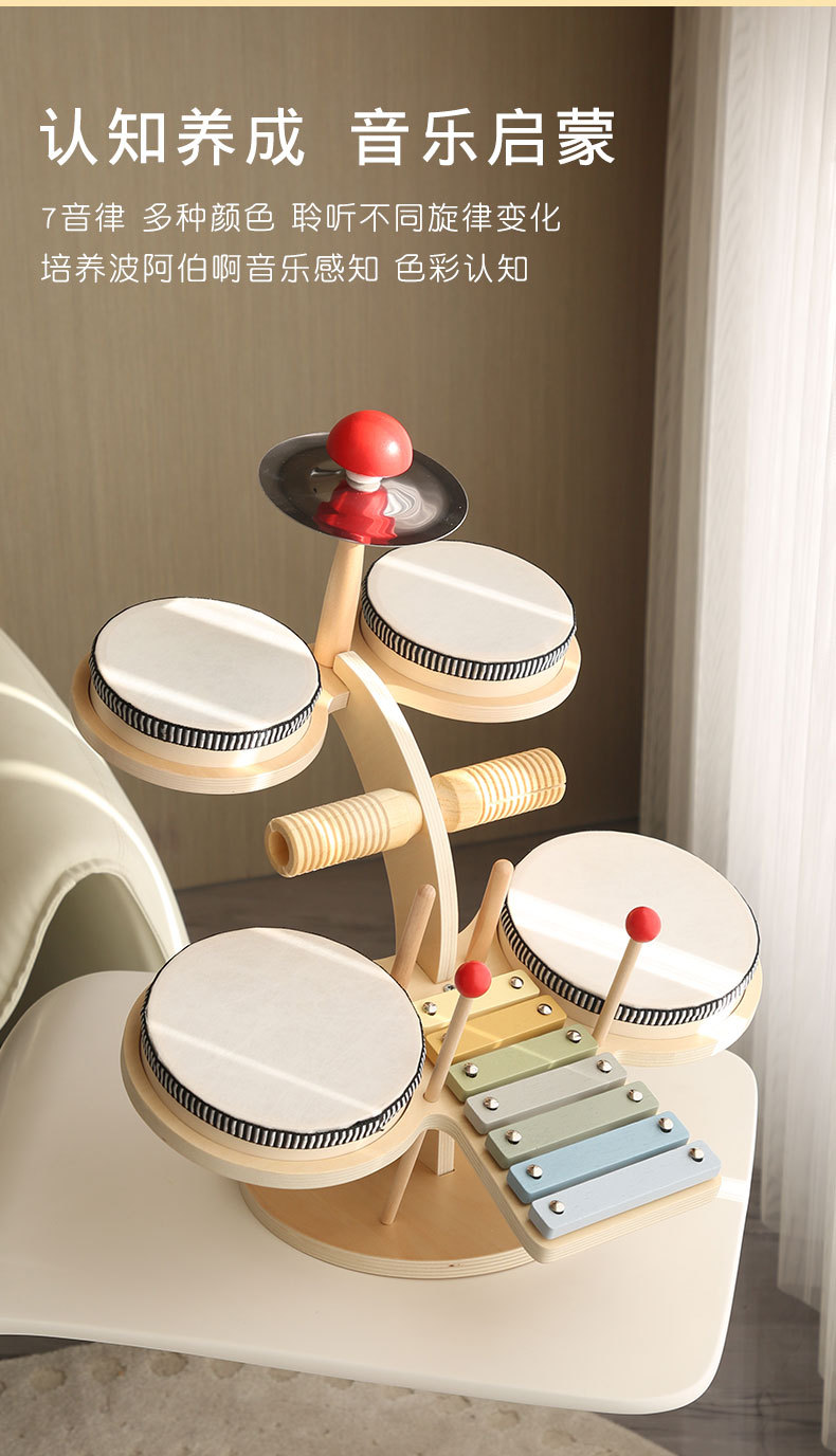 Montessori madera educación temprana multifuncional tambor liberación bebé música talento color cognición educativa iluminación juguete