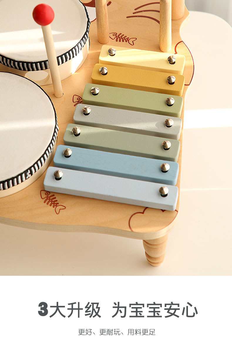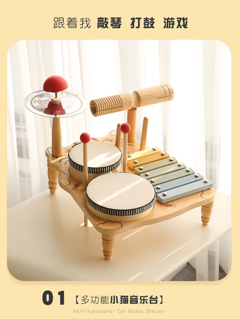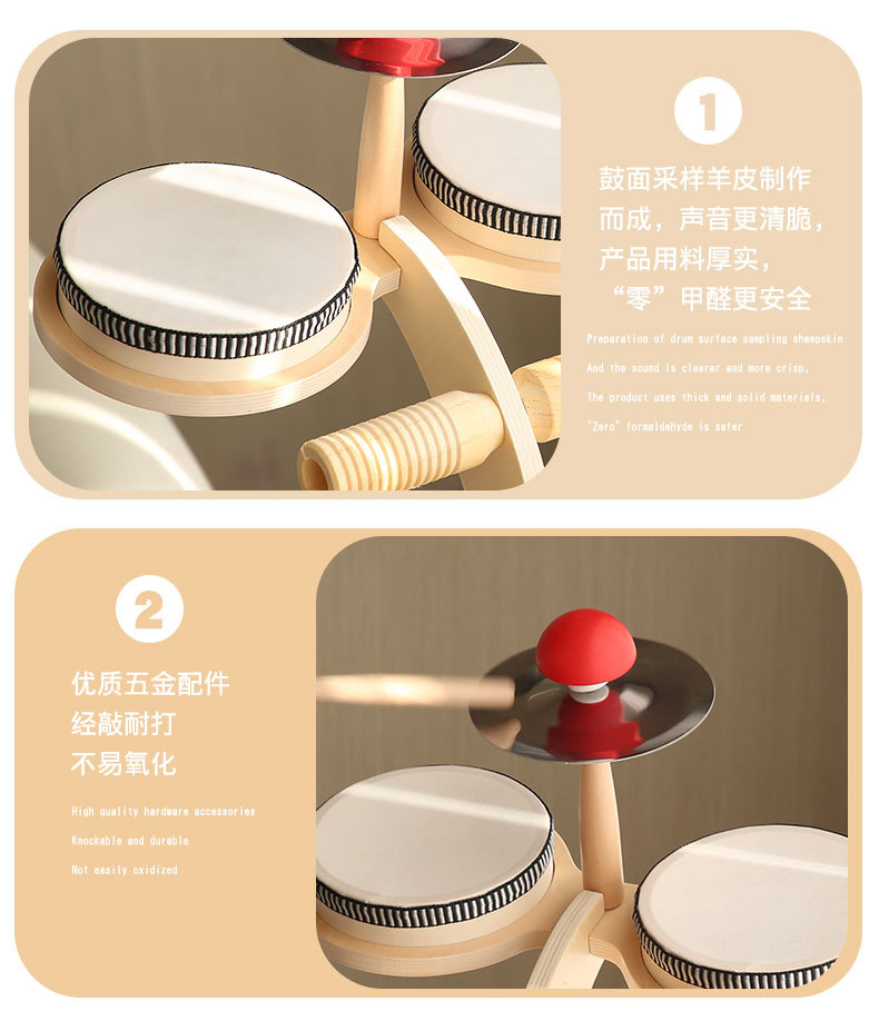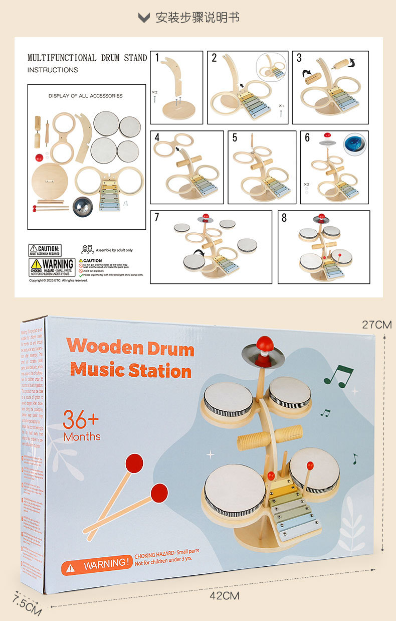Montessori madera educación temprana multifuncional tambor liberación bebé música talento color cognición educativa iluminación juguete