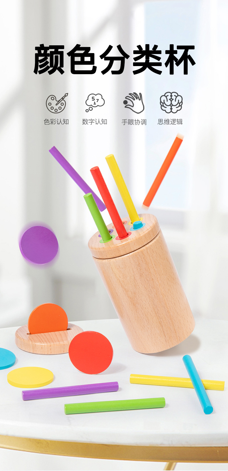 Bebé 0-3 años Montessori madera educación temprana juguetes arco iris clasificación de color bloques de construcción forma combinación juguetes educativos